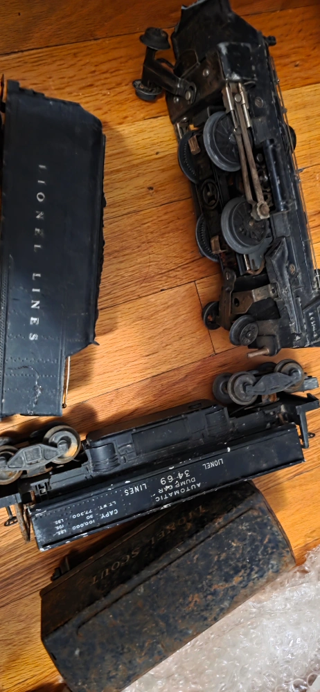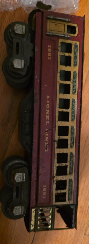 23A collection of Lionel trains. Includes a passenger car with the number 1691. There is also an automatic dump car, a scout car and various other pieces. Consider setting it up on a day off for a truly relaxing experience they have wear and some missing parts selling as is great for train collectors