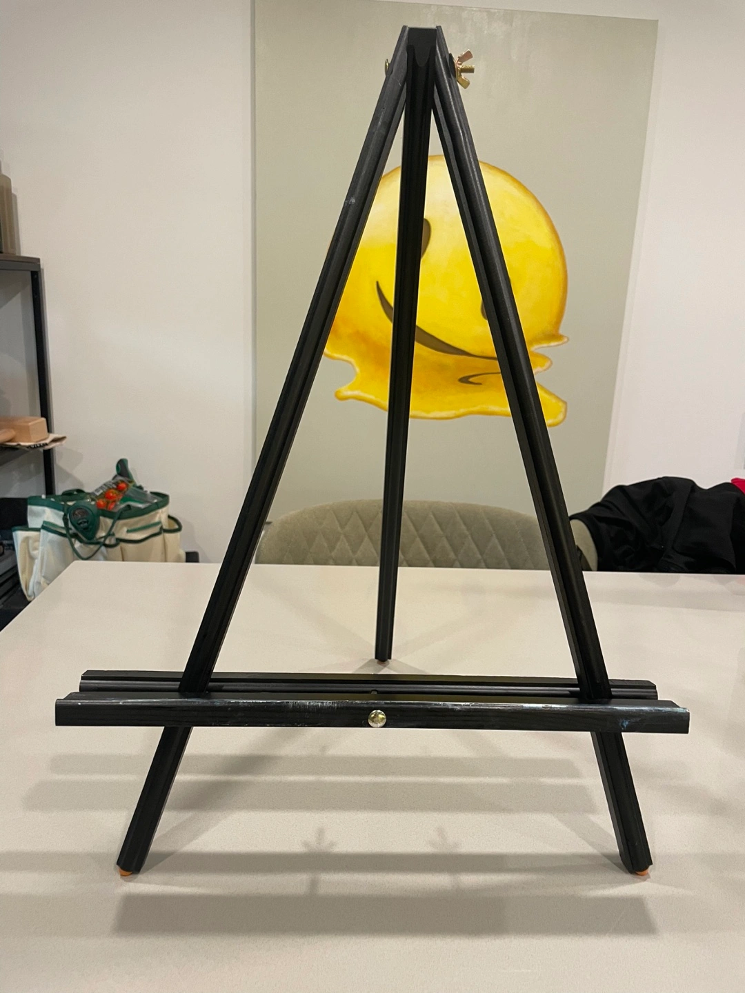 Two black wooden adjustable easels. Perfect for painting with a small or medium canvas on a table.