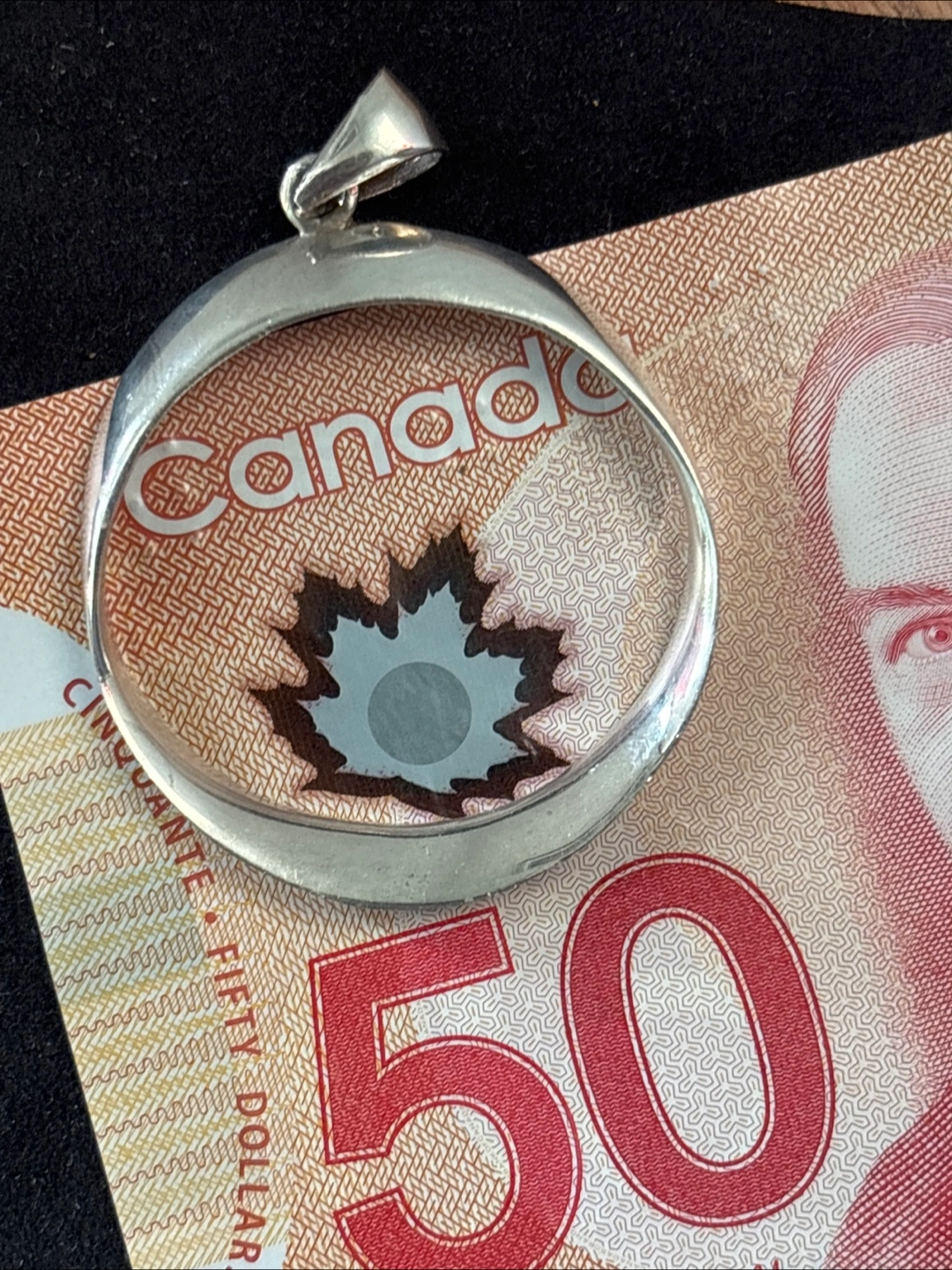 A stylish silver pendant. The ring appears circular with a small attachment. A great way to accessorize any outfit, whether you're going out or staying in.