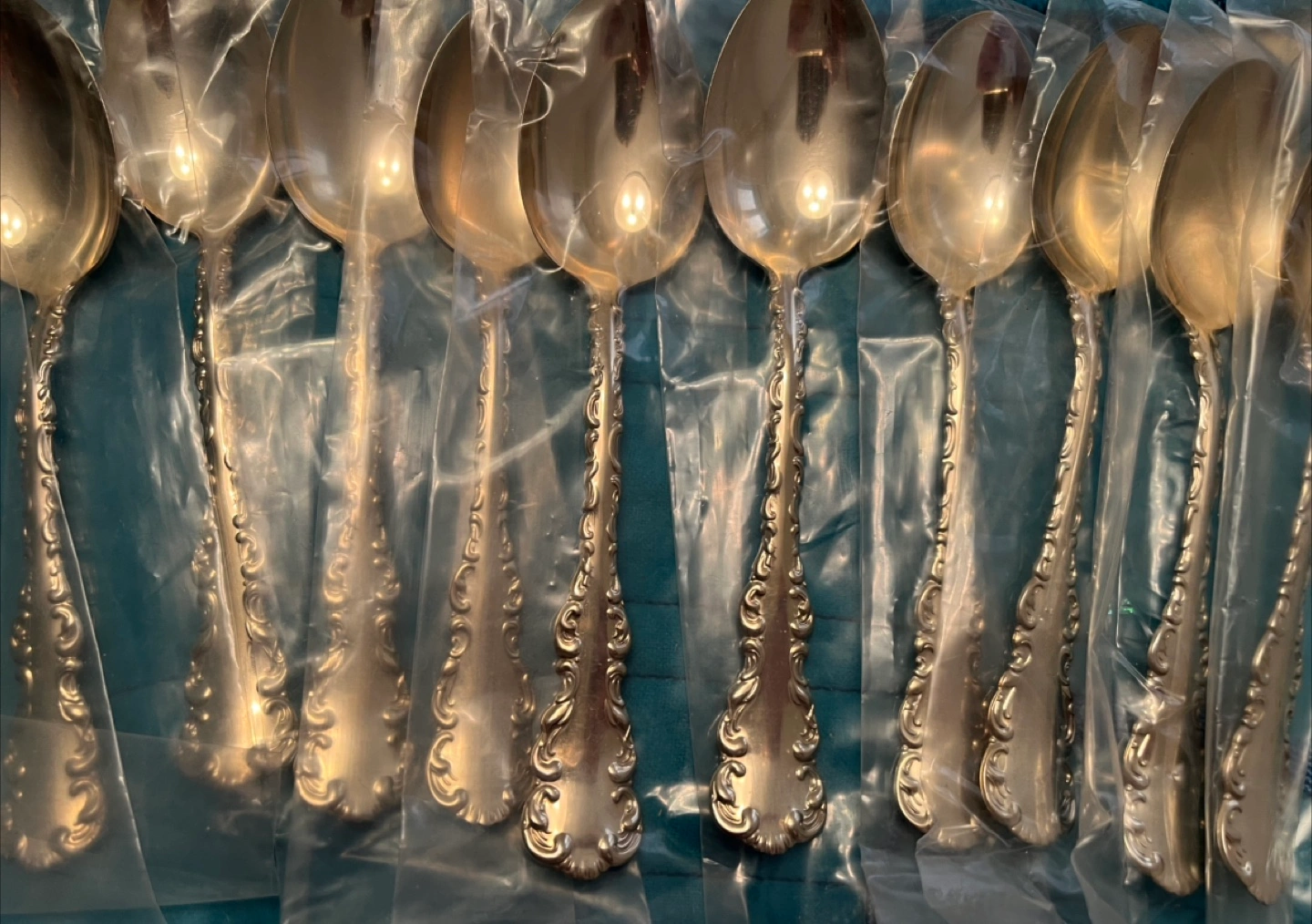 A.I. says it all.. except there are only 7 salad forks, not 8. Everything else is complete and sealed.