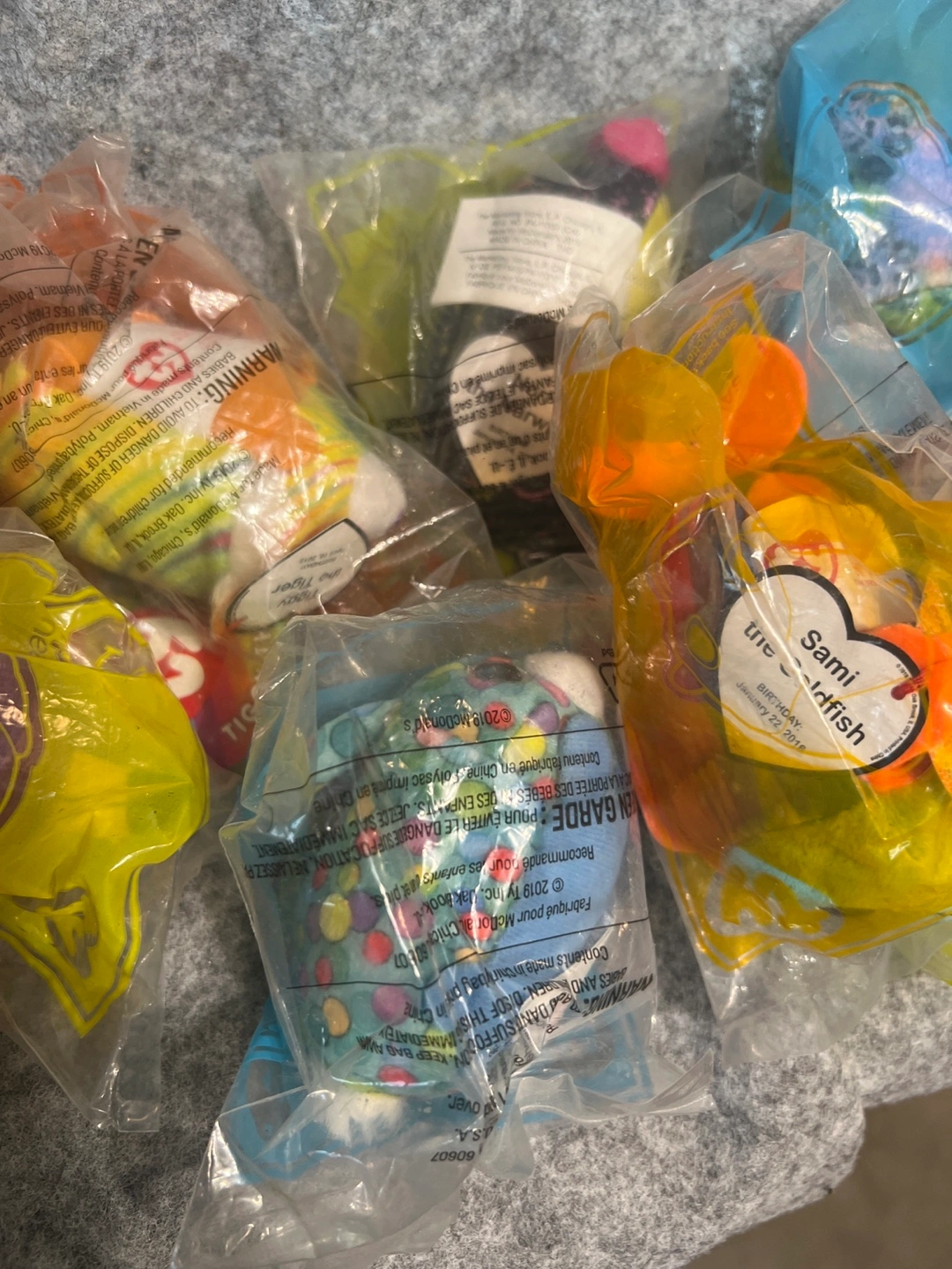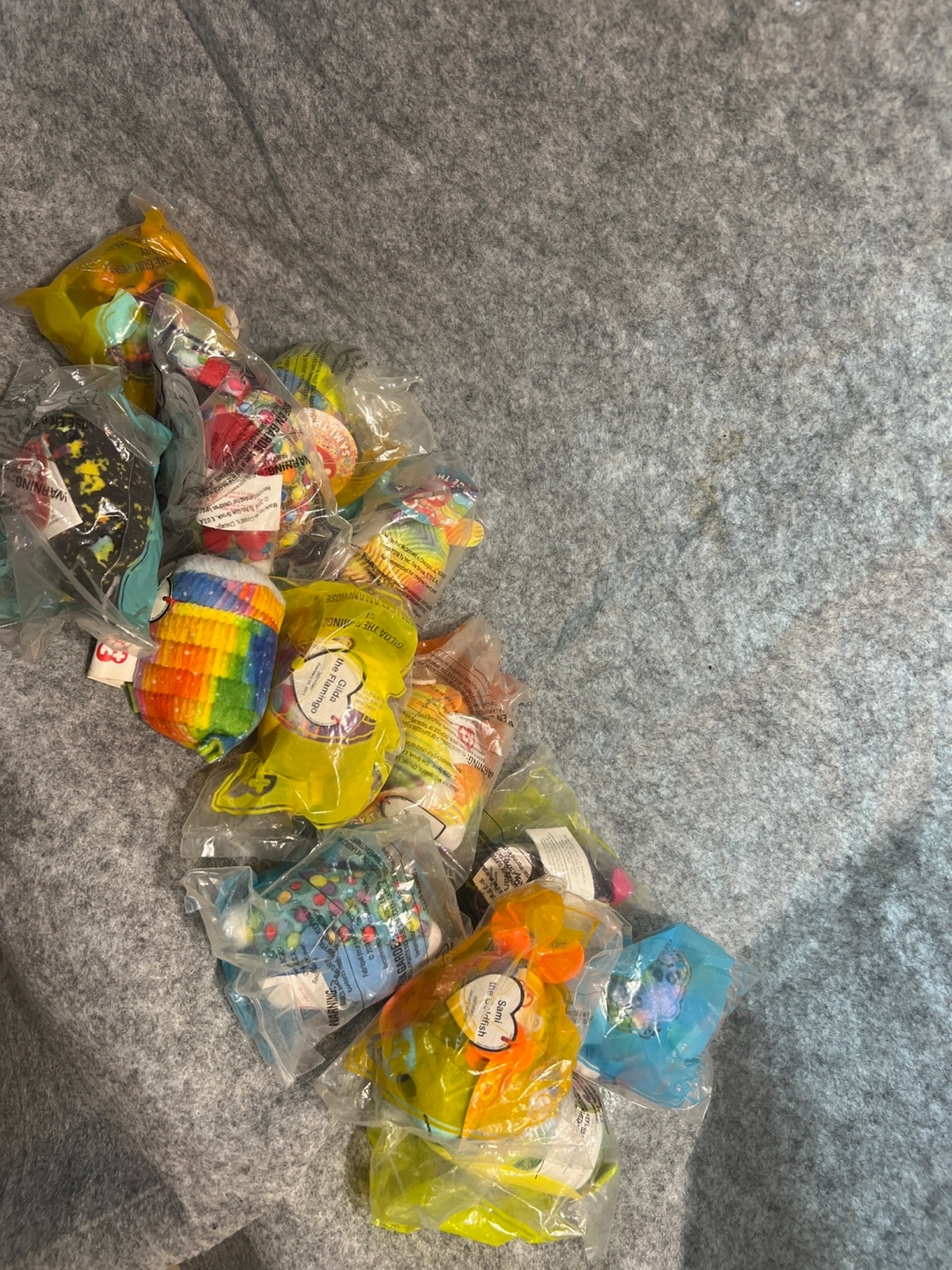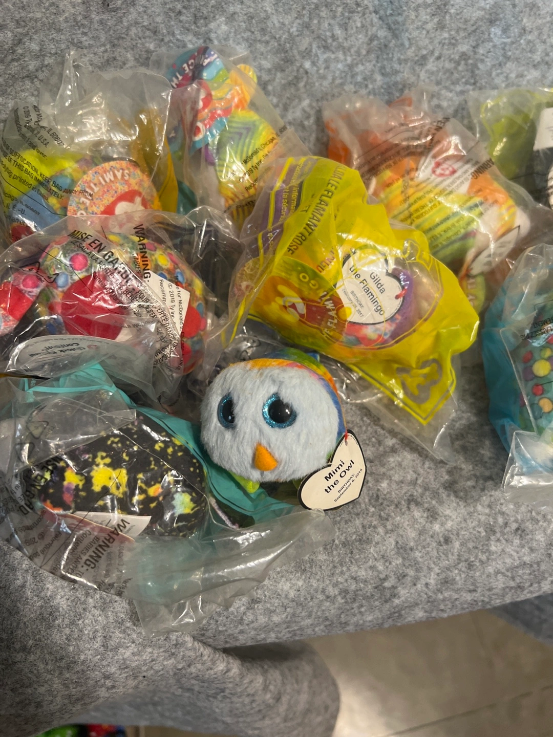 Ty McDonald’s toys 12 unopened one open. A selection of small, colourful stuffed animals still in their original packaging. Perfect for gifting to a child or adding to a collection.