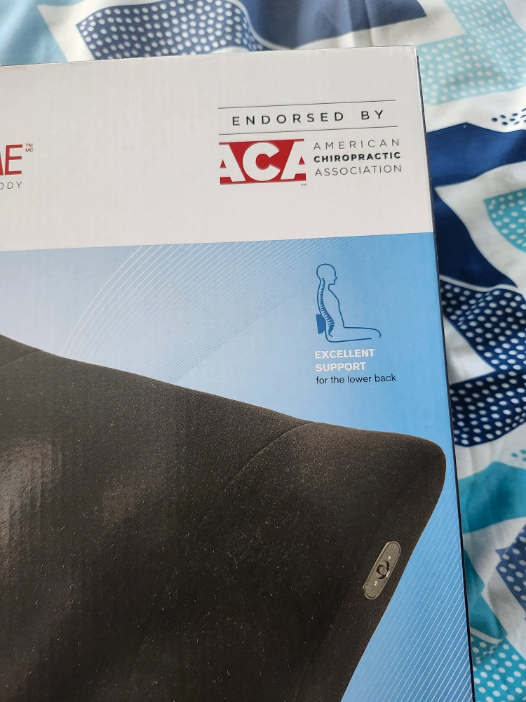 A lumbar support cushion. Features massage to soothe and relax. Side to side massage. Provides support for the lower back. Could be a great addition to any office chair to promote good posture.