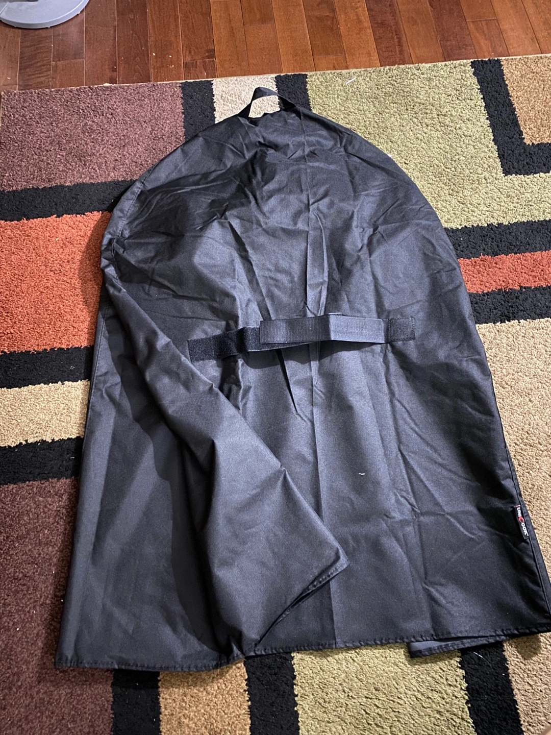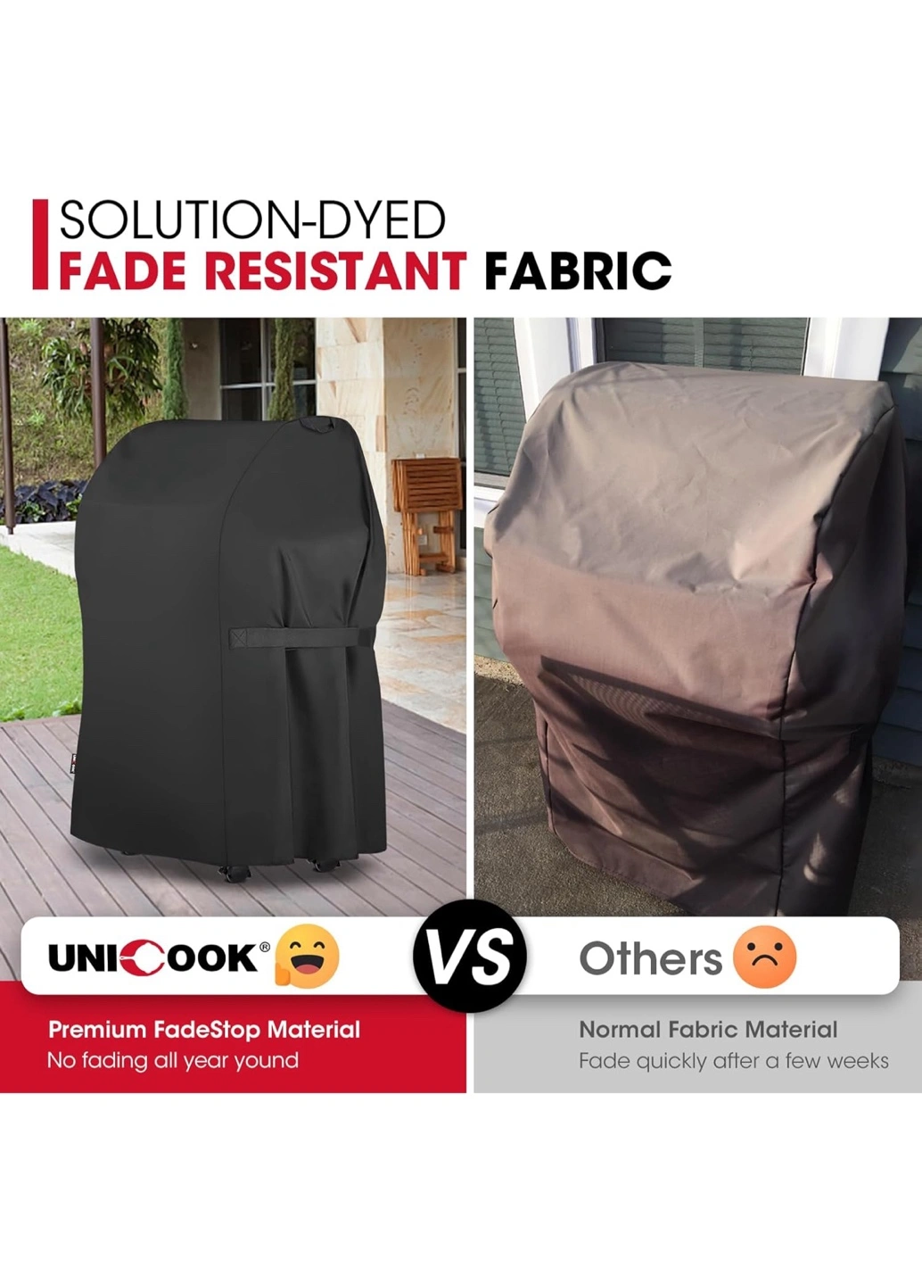 Black grill cover. Weather-resistant fabric. Has windproof fastening straps and convenient handles. Imagine how much easier it will be to maintain your grill's condition with this cover.