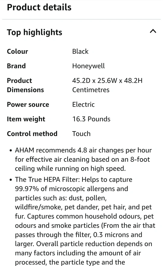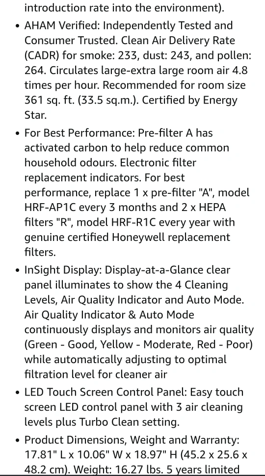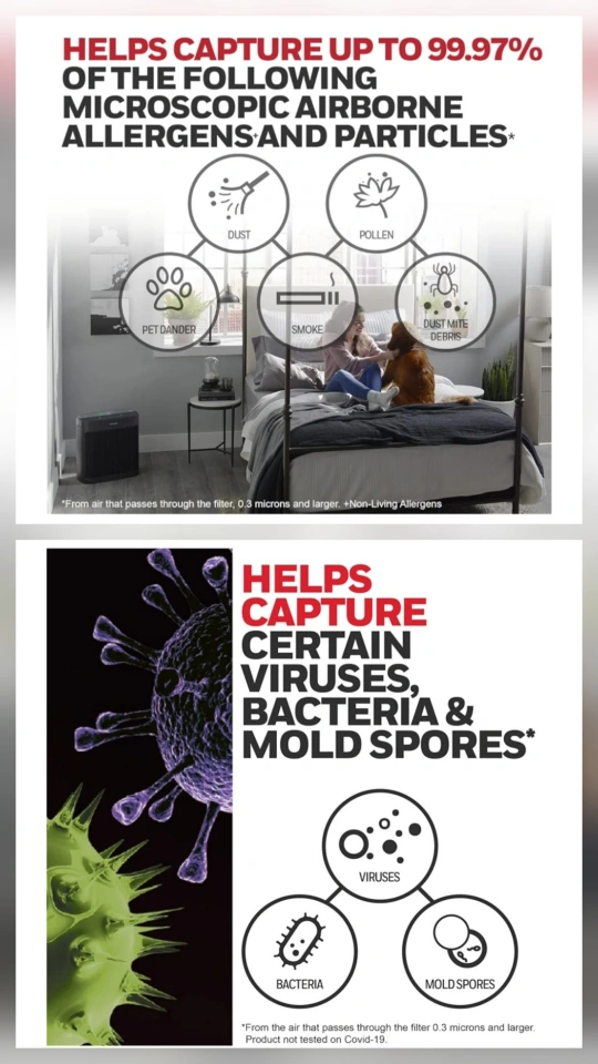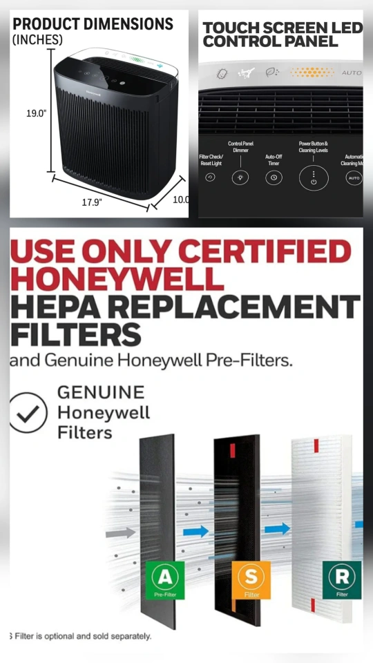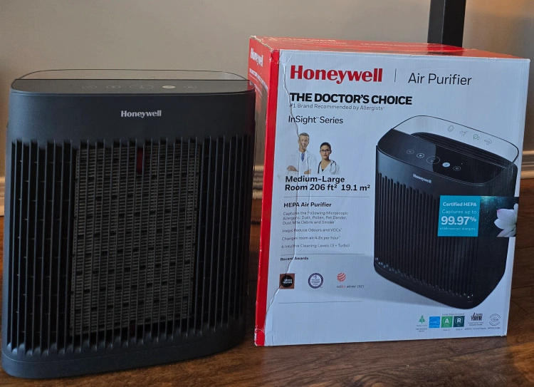 A Honeywell Air Purifier, helping you breath easy. The design is sleek and modern, great for any home. The unit has a touch screen LED control panel. It helps capture up to 99.97% of airborne allergens and particles. It would make a fantastic addition to your living space.