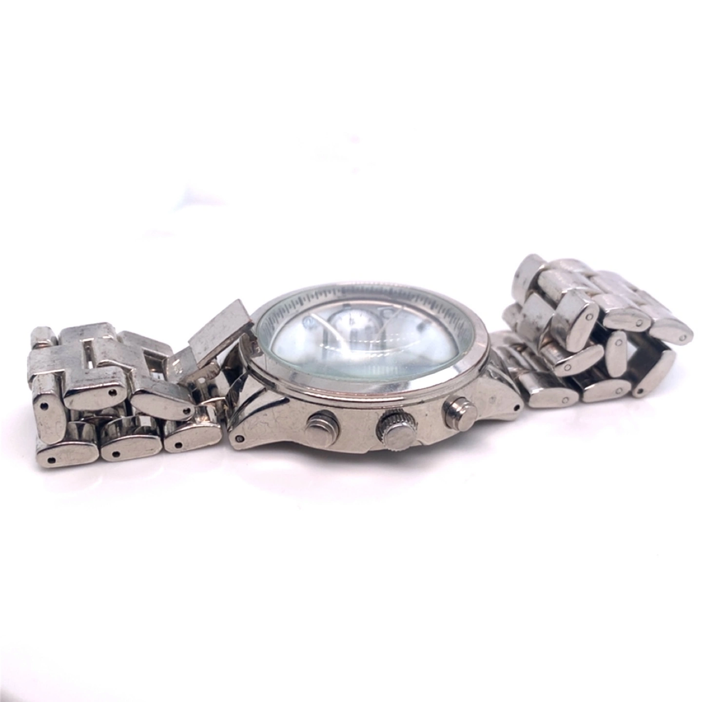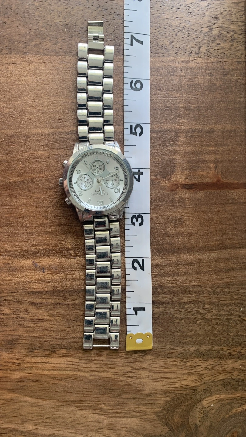 With brand new battery. Silver watch. Featuring multiple dials. Silver band with a folding clasp. A great accessory for your daily wardrobe, or you can give it to a loved one.