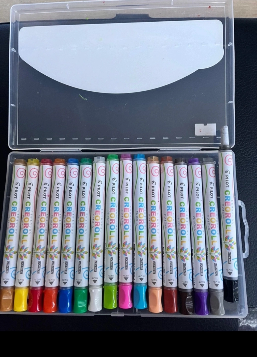 Set of sixteen coloured gel crayons. Comes in a clear plastic case. A great tool for relaxation through art and drawing. Cash, pick up only plz.