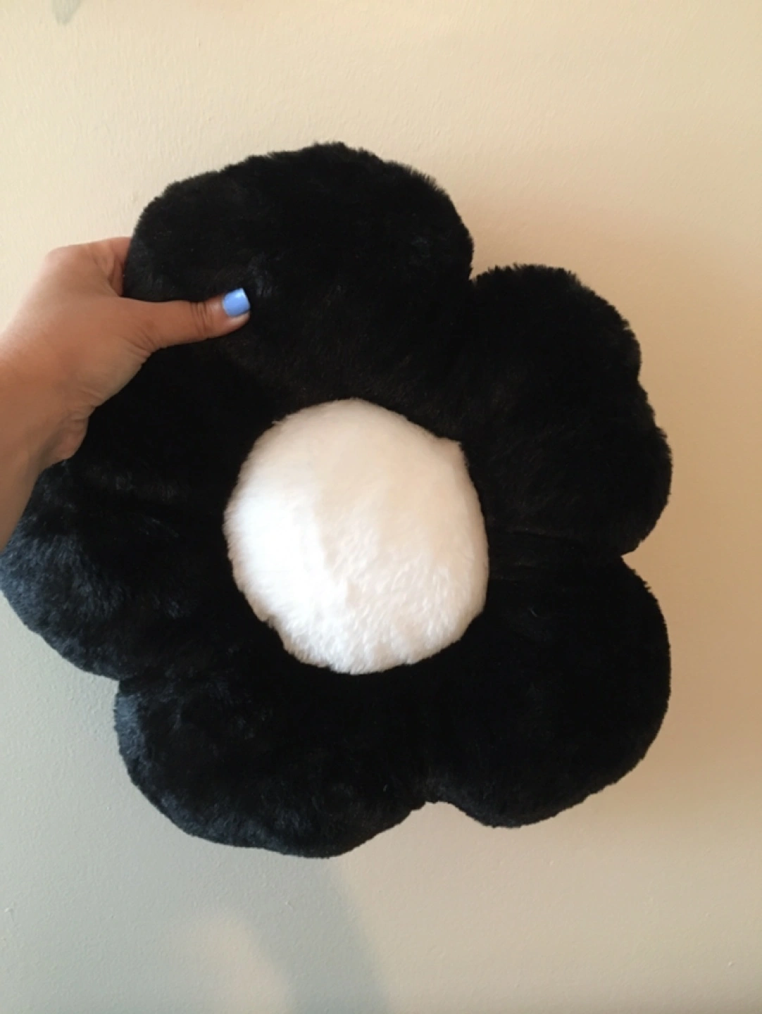 New A large, flower-shaped pillow. It features a fluffy texture with a white centre. Perfect for adding comfort to your day, you might find this pillow is just what you need to unwind.