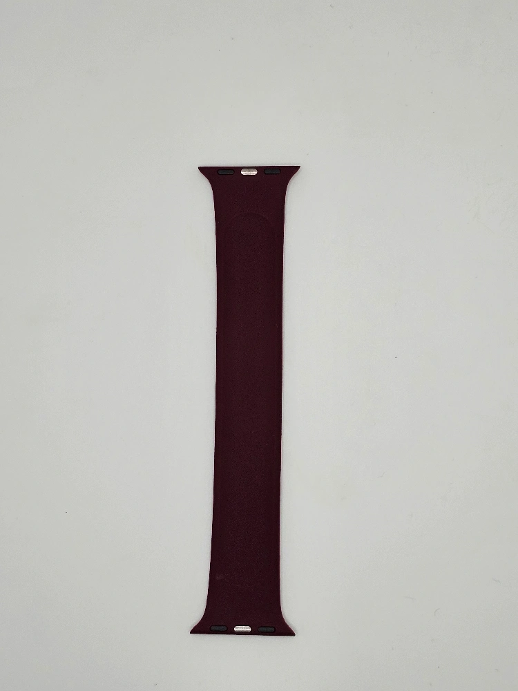 A maroon colored band. Made of a stretchy material. Will pair well with your Apple Watch for everyday use. Consider this band to bring a sense of calm to your day.