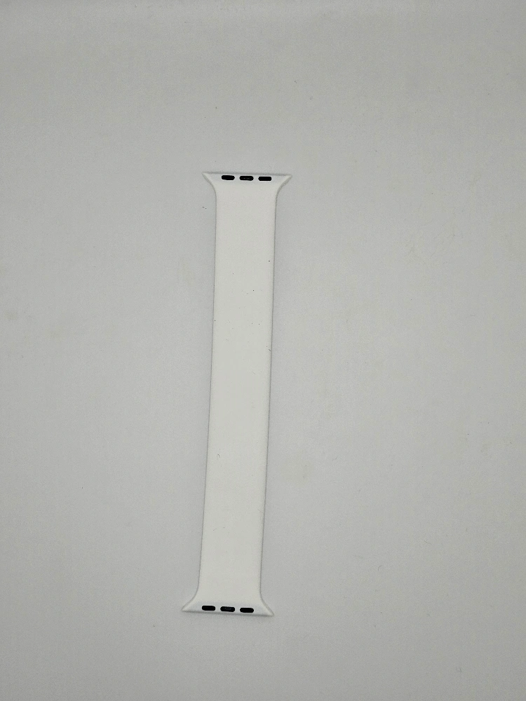 A white strap. Smooth design. Features holes on either side, designed to fit the body of an Apple Watch. This watch strap can be a great addition for your device, enabling you to stay connected while improving your look.