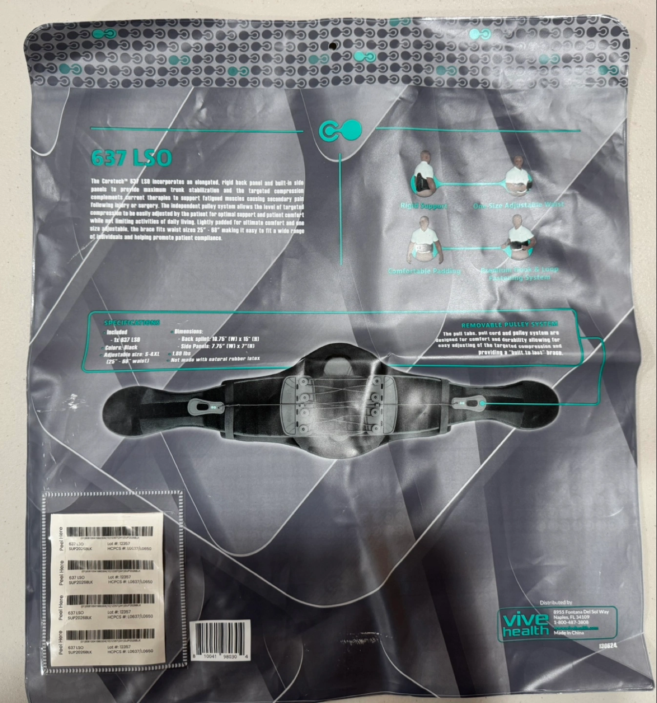 Relieve, recover, and support your lower back with the Coretech PRO 637 LSO from Vive Health. This advanced lumbar-sacral orthosis (LSO) brace offers full spinal support from L-1 to S-1, making it ideal for post-operative recovery, chronic pain, herniated discs, or degenerative disc disease. Designed with a removable pulley system for precise compression and easy adjustability, it delivers targeted support exactly where you need it.
