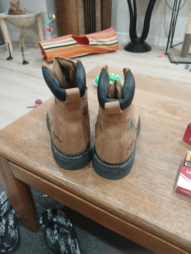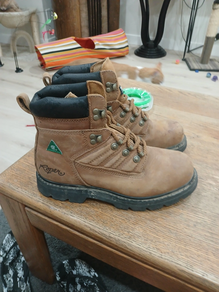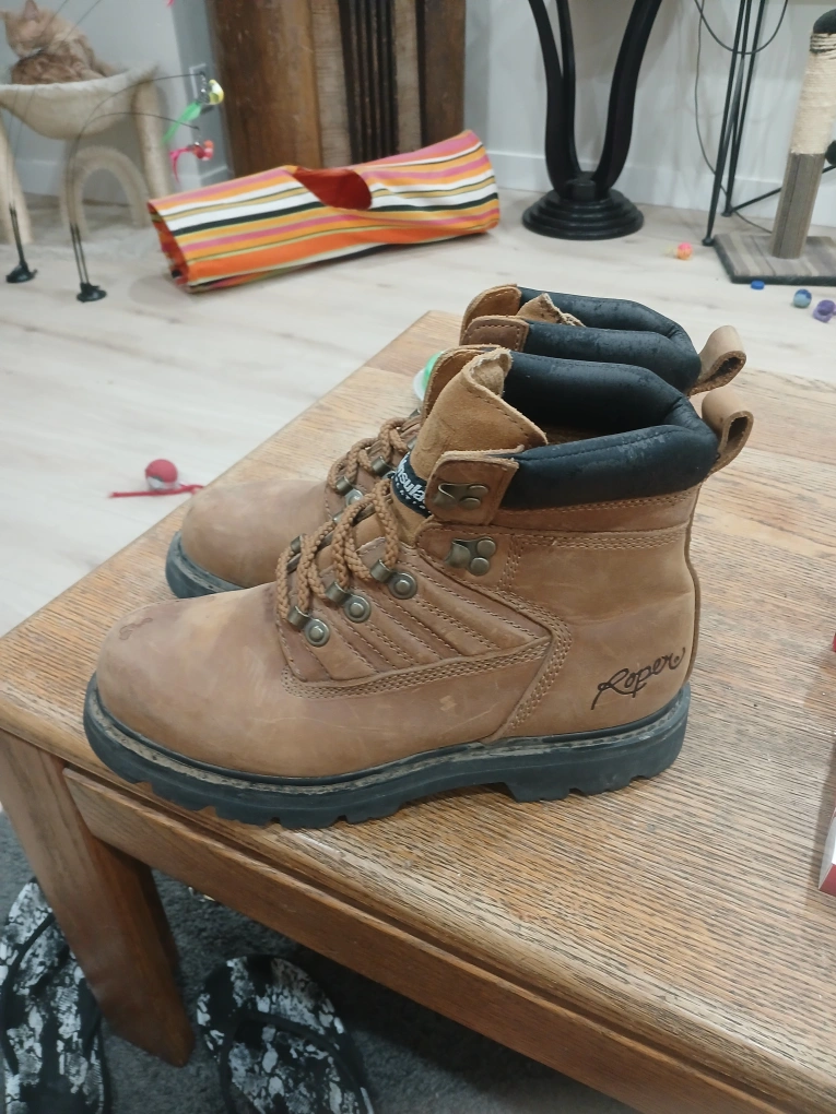 Comfortable brown boots. Features a padded collar, and lace-up closure. Would be great for a relaxing walk in nature.