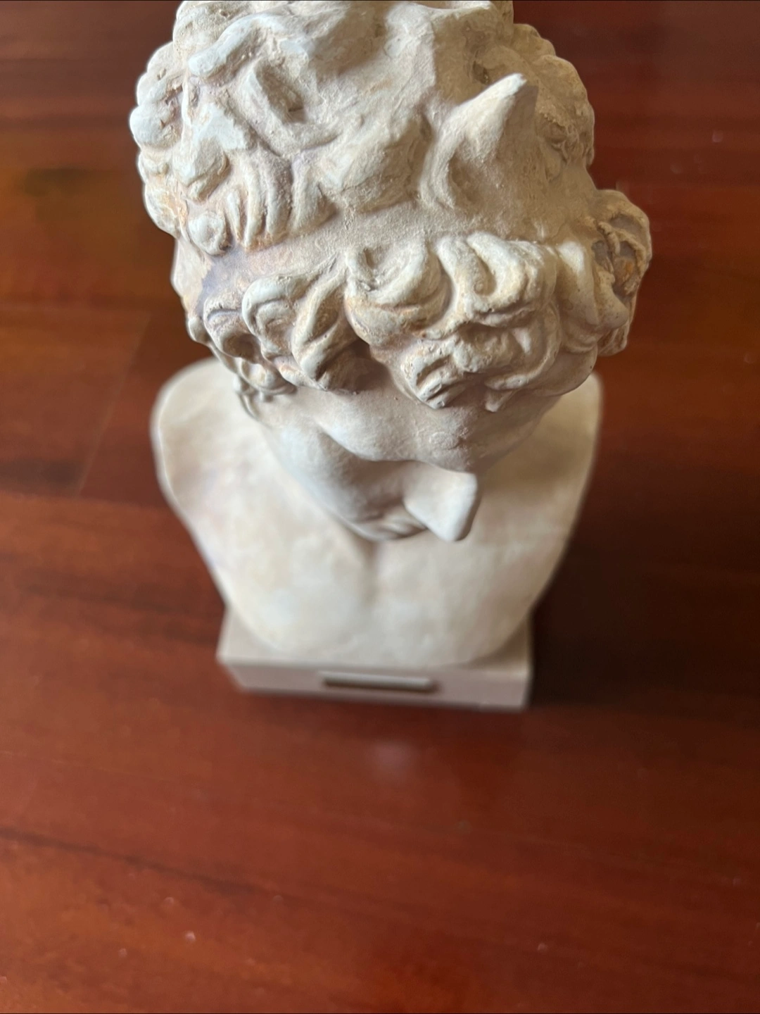 This plaster bust was brought back from Greece. It measures 5”w x 5”d x 10”h
