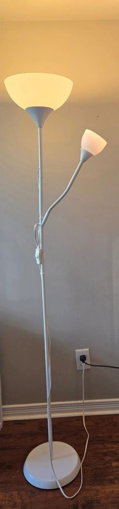 Floor lamp with a reading light. White finish. Dual light design.