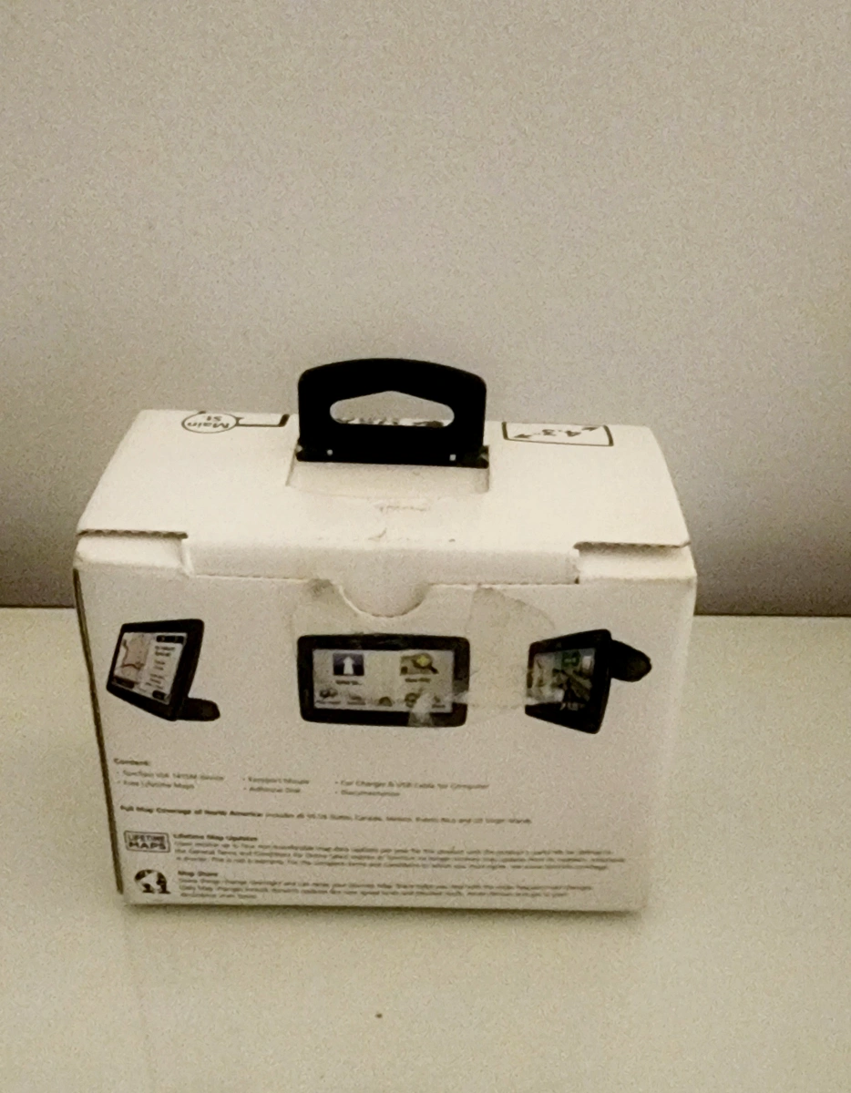 It comes in its original box with all the accessories. A black navigator. The navigator has a touch screen. A great item to have on long road trips.