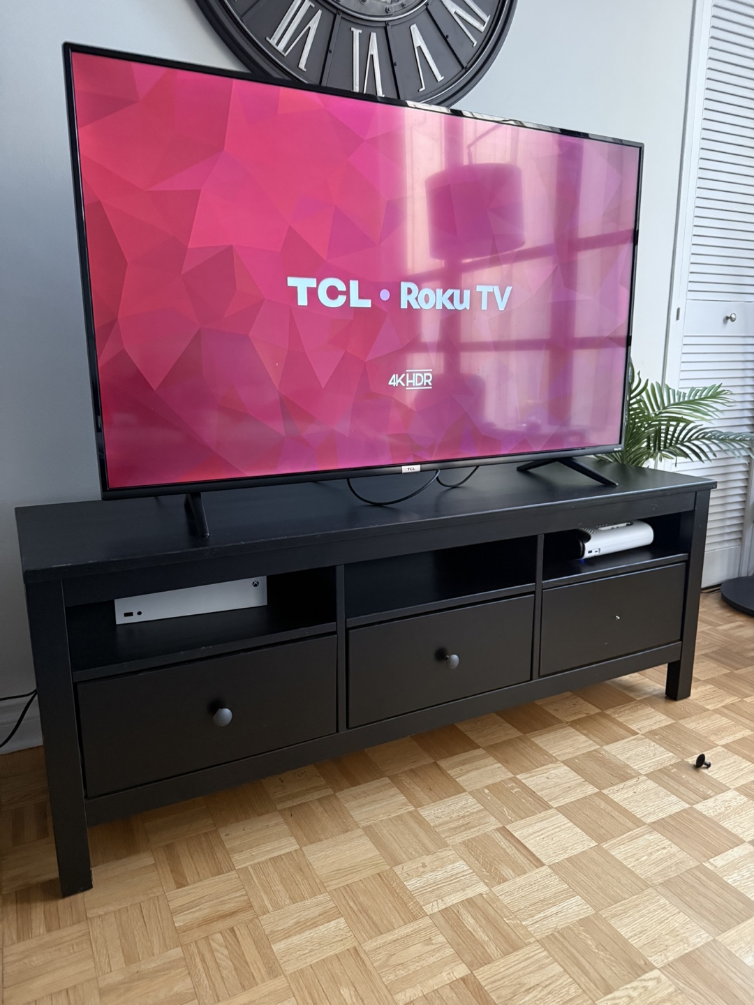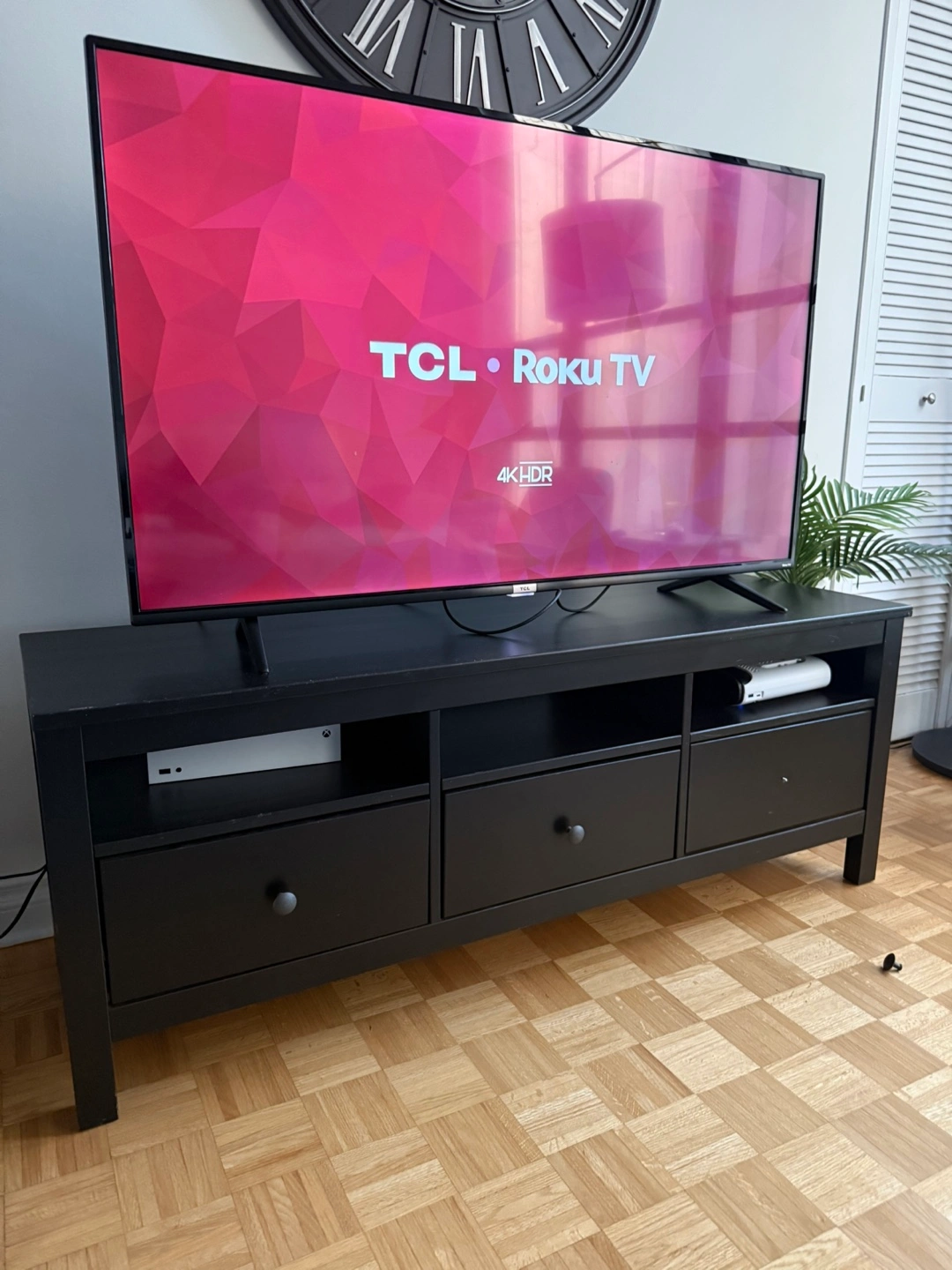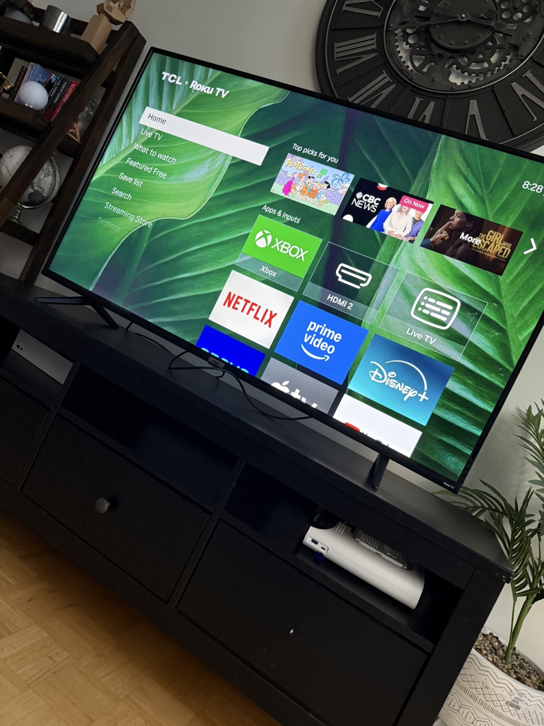 Almost new. TCL Roku 4K Smart TV. Super slim with built in Dolby Atmos Sound.