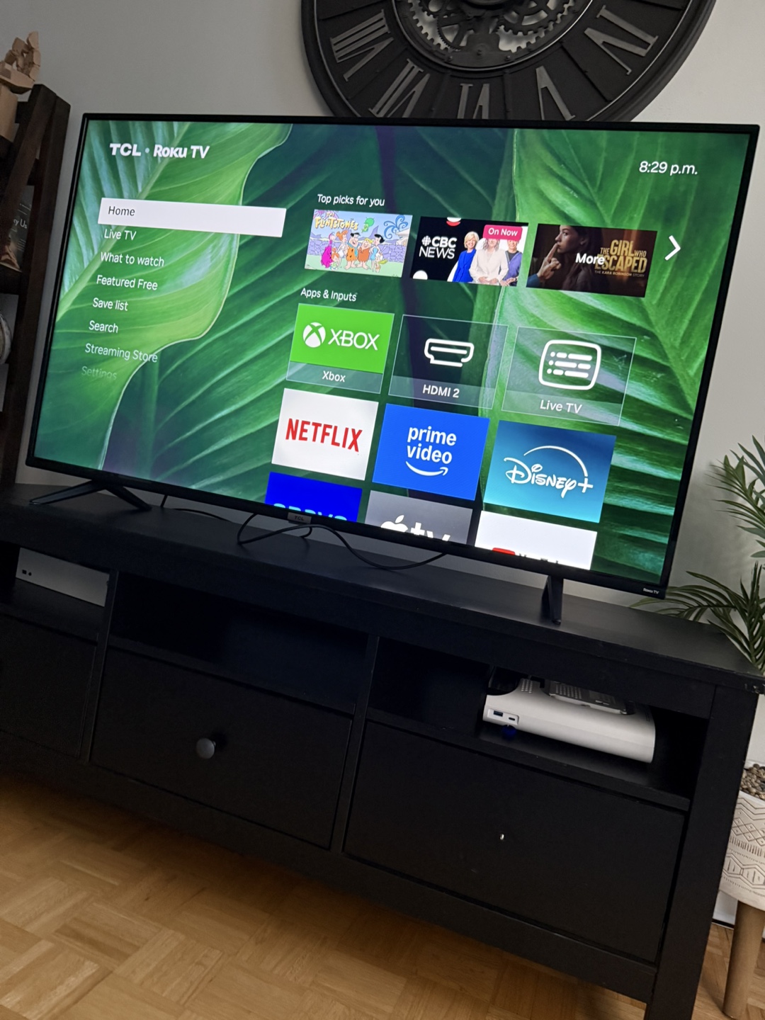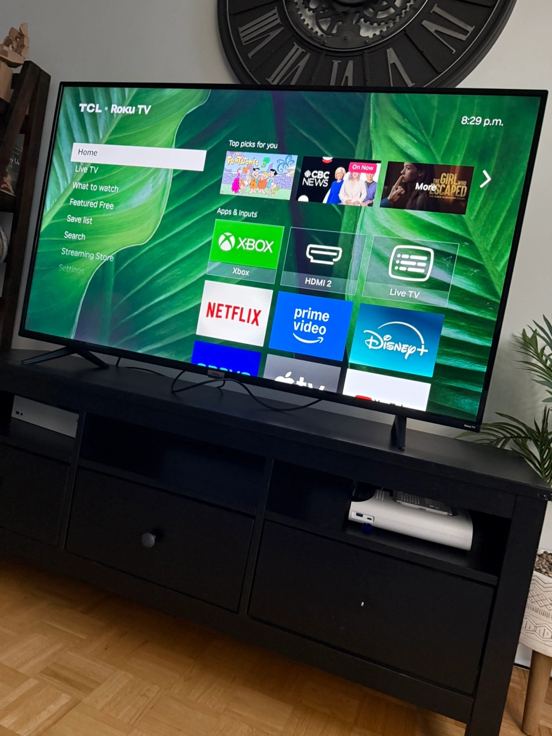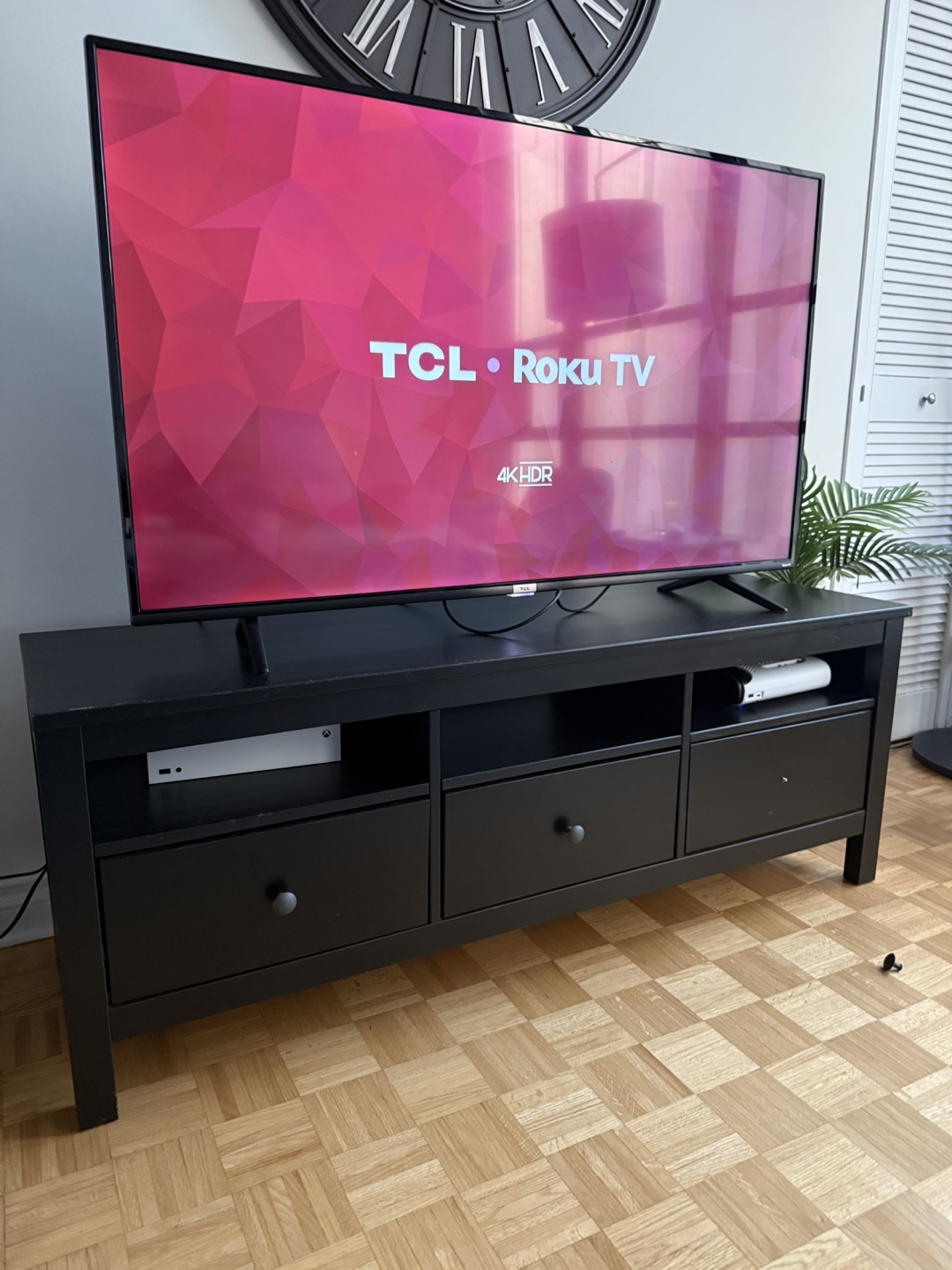 Almost new. TCL Roku 4K Smart TV. Super slim with built in Dolby Atmos Sound.
