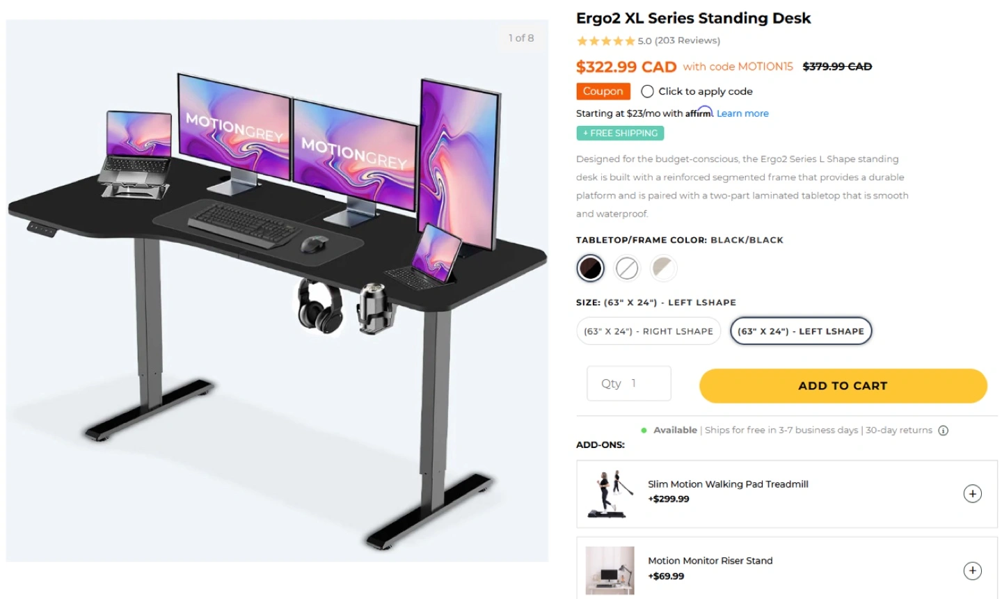 I’ve got a spacious L-shaped standing desk that I’m selling: electronic Ergo 2 XL.