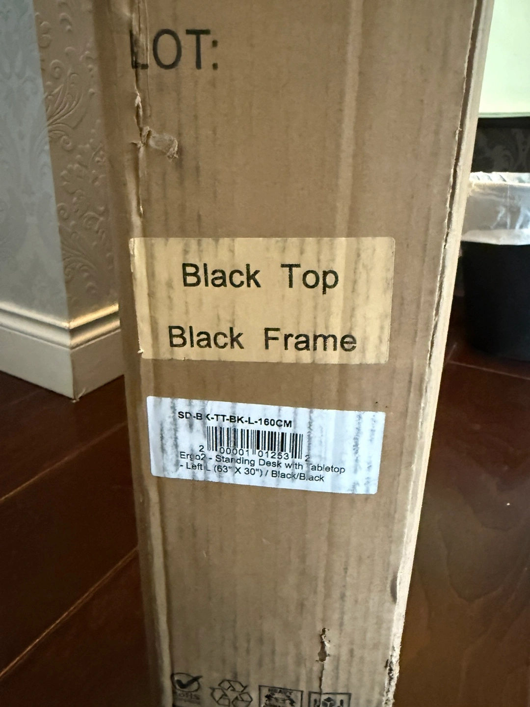It’s a left L-shape, with a black tabletop and frame. I bought it in December and received it, but I’ve recently moved to Toronto and won’t be able to use it anymore. I’ve only cut through the upper tape but never had the opportunity to even bring the table out from the box; I’ve stuck new tape over it so it’s almost brand new. I’m selling it at a loss to make sure someone else gets to enjoy it instead of letting it collect dust.