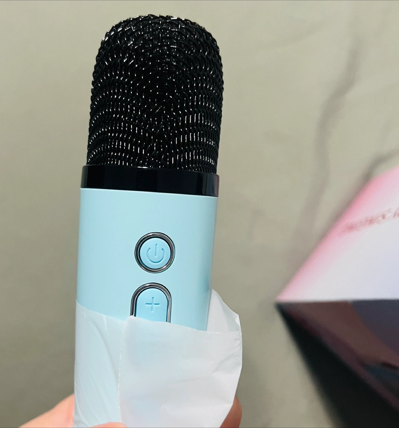 BNIB, colour is light blue. Portable karaoke machine speaker with a wireless mic. Would make a great gift.