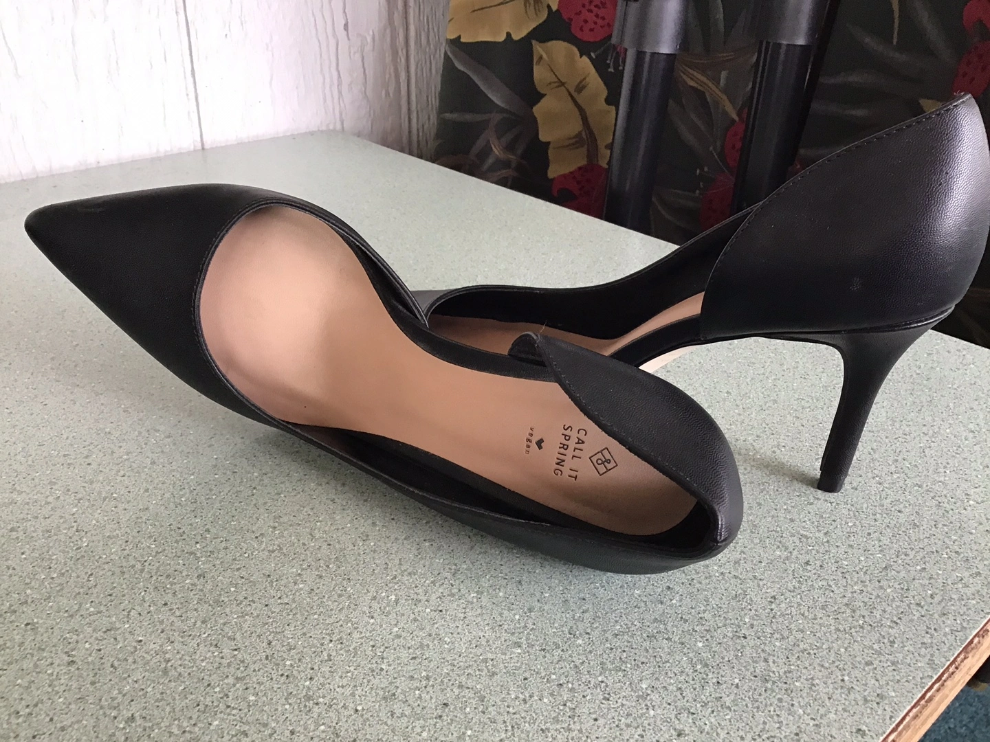 A pair of classic, black heels. Pointed toe design. Side cutouts. High heels. A great option for any special occasion.
