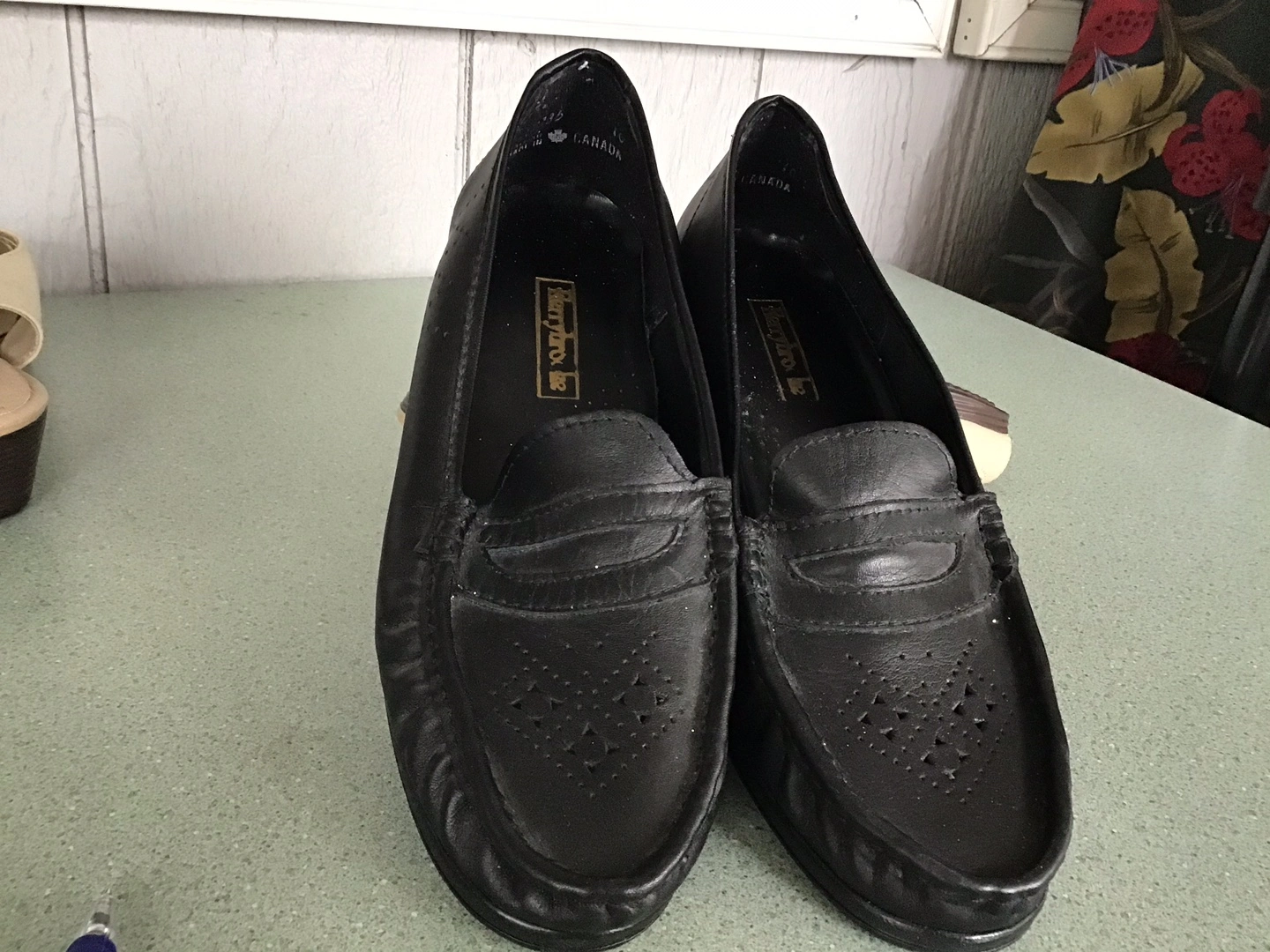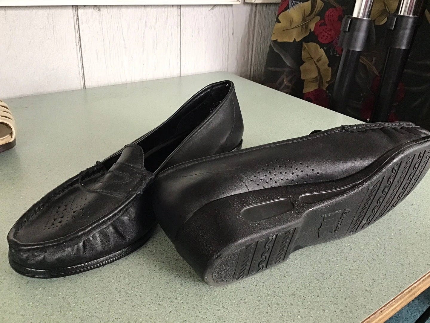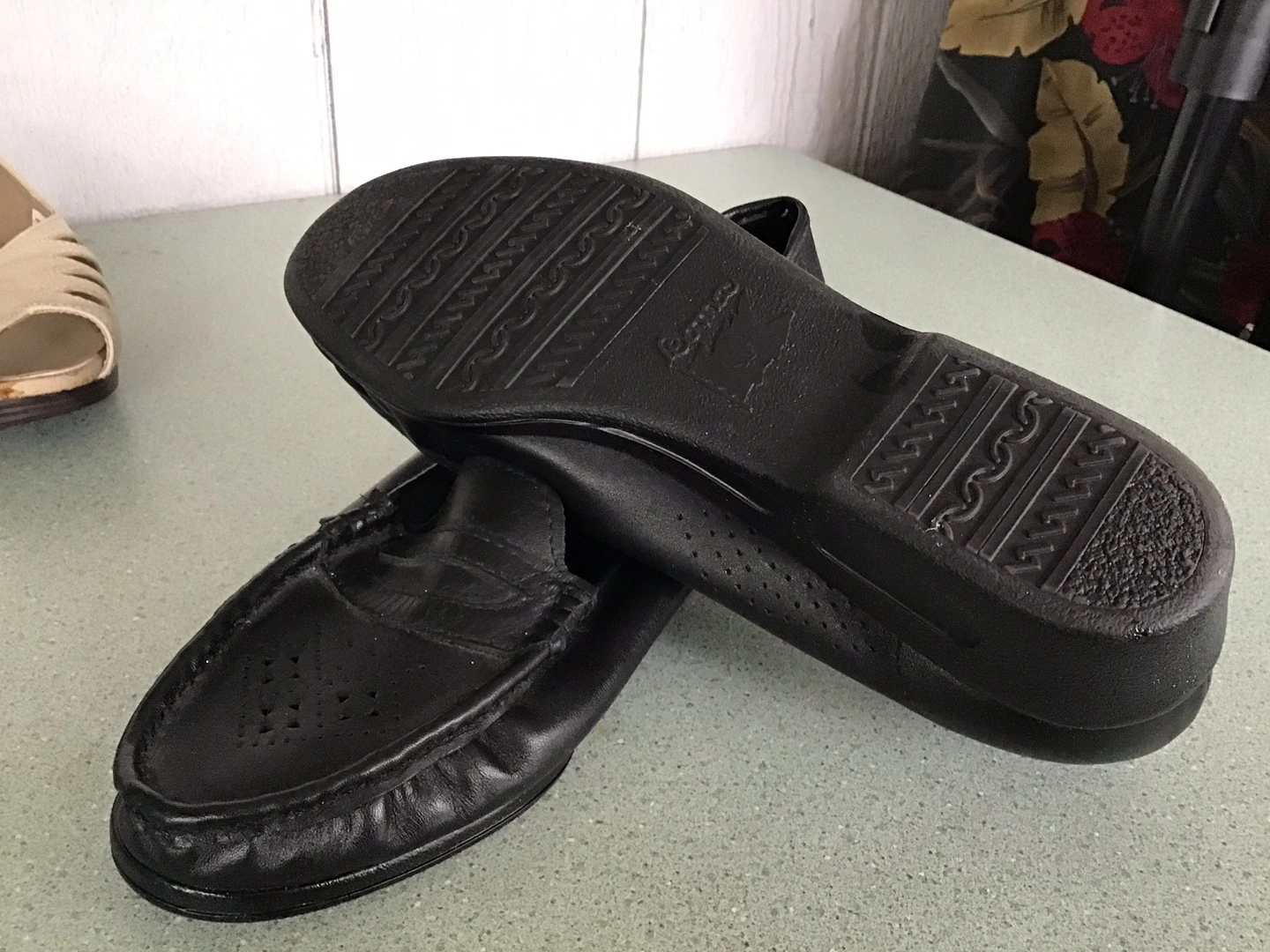 Black slip on soft leather shoe with slip on wedge heel from Sears air holes side and toes so comply