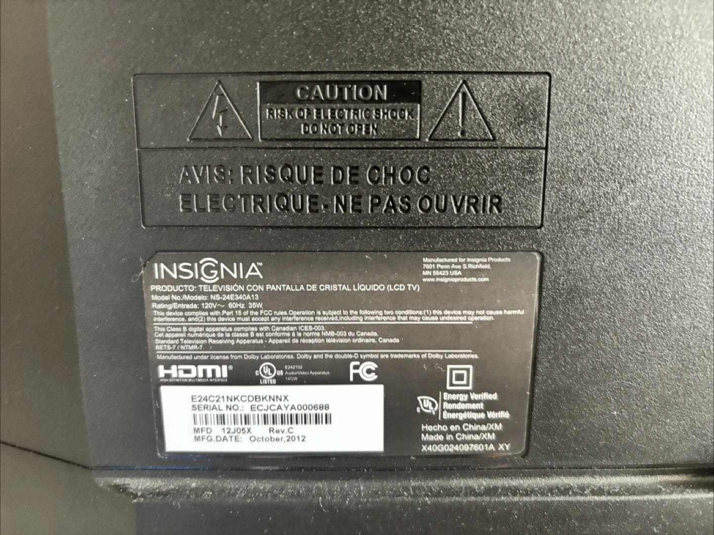 Insignia 24" 1080p 60HZ Full HD LED TV / Monitor