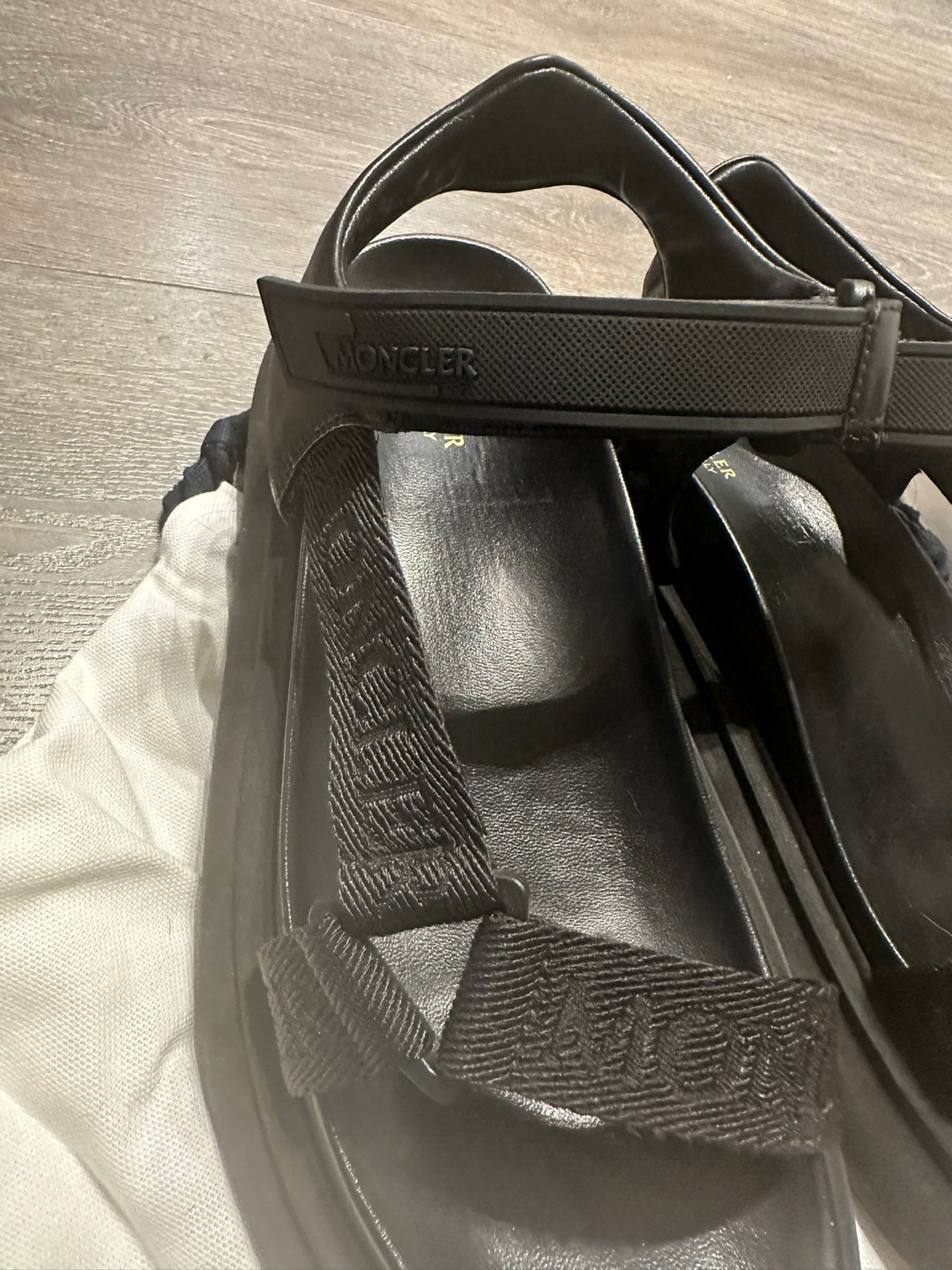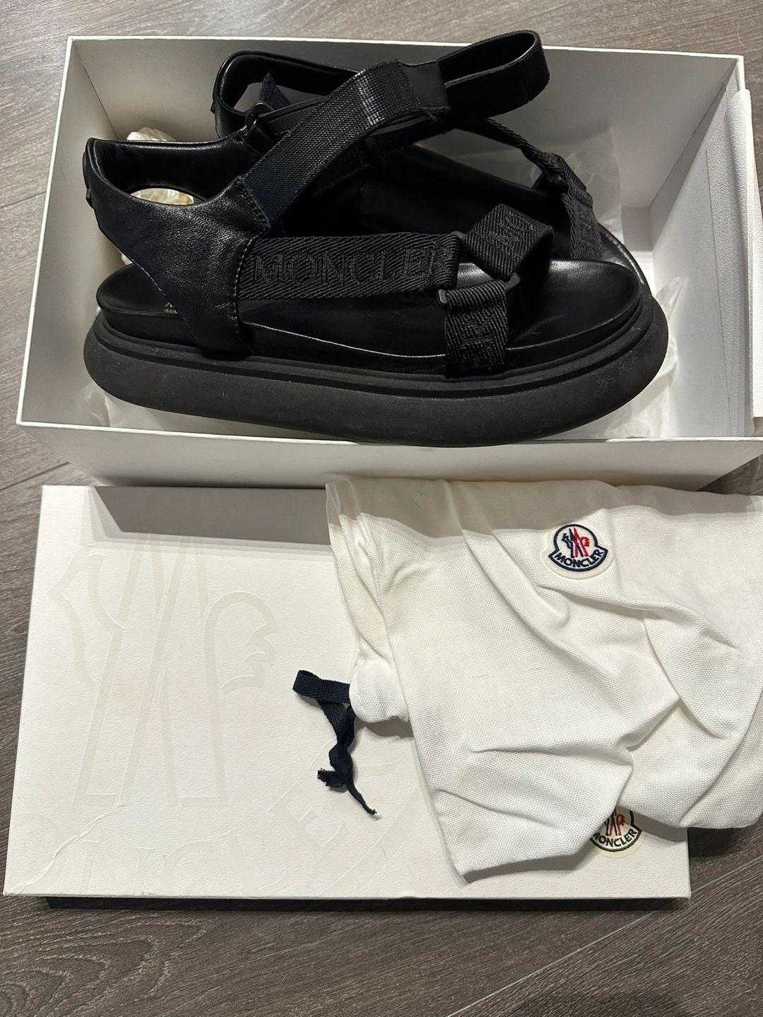 Moncler sandals - worn once , comes with box and dust bags Very trendy but unfortunately too small on me Retails new for $700+