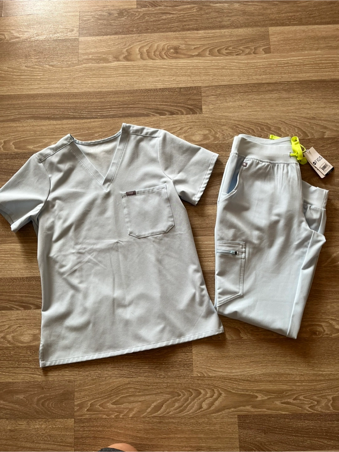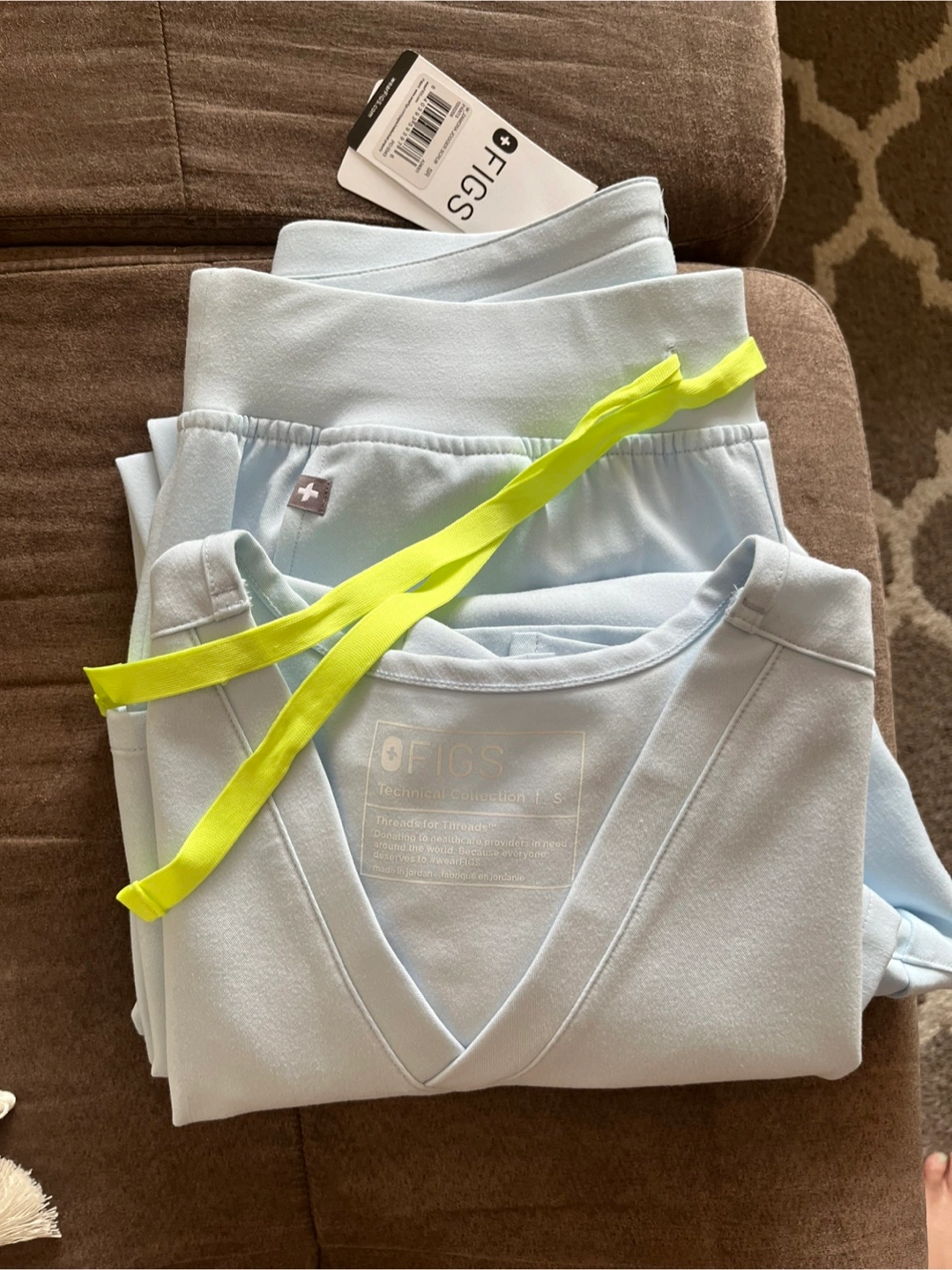 Figs Catarina top and SR highwaisted Zamora pants. Not sure of the color either dusty blue or silver arrows. Selling as a set.