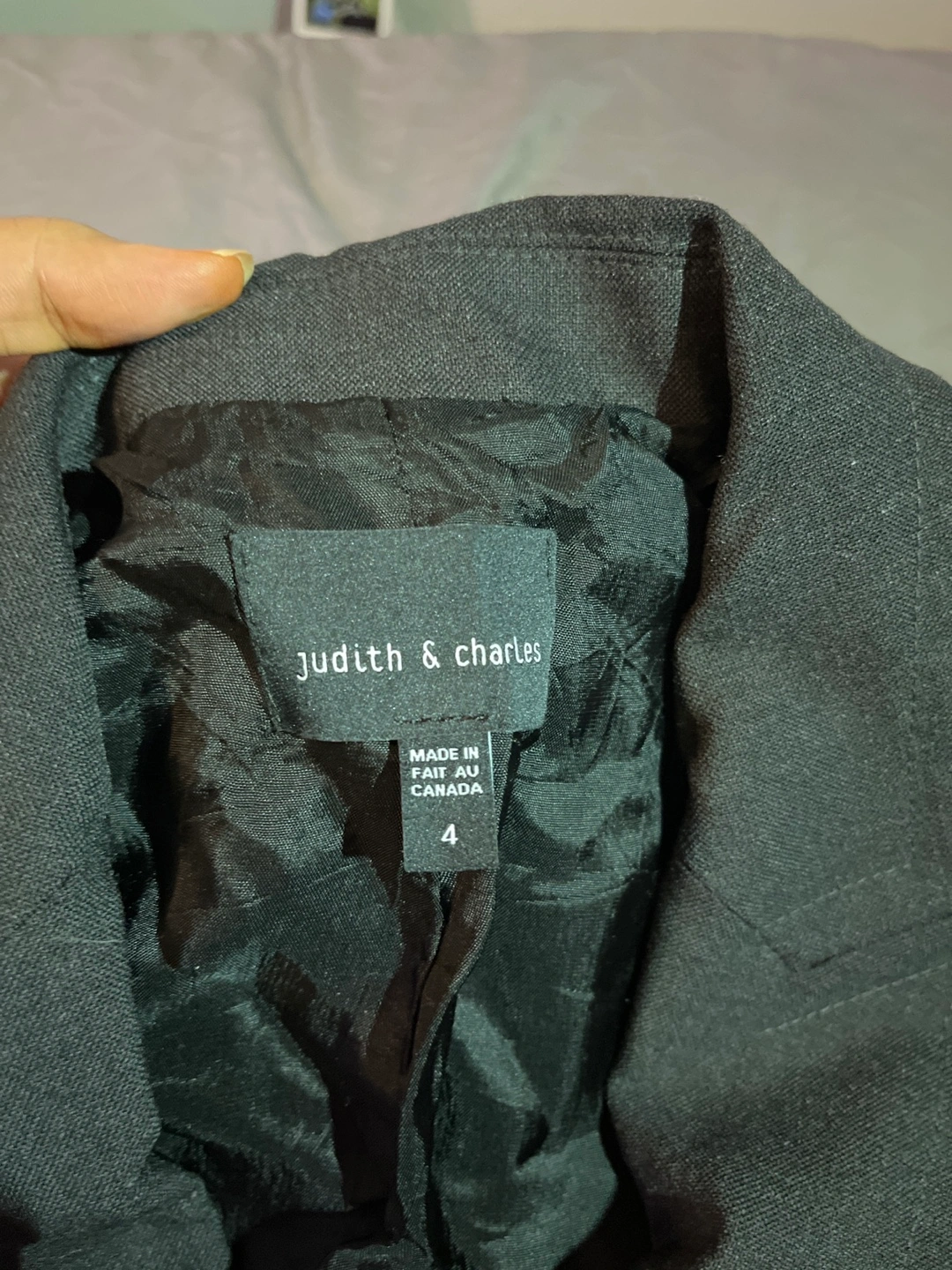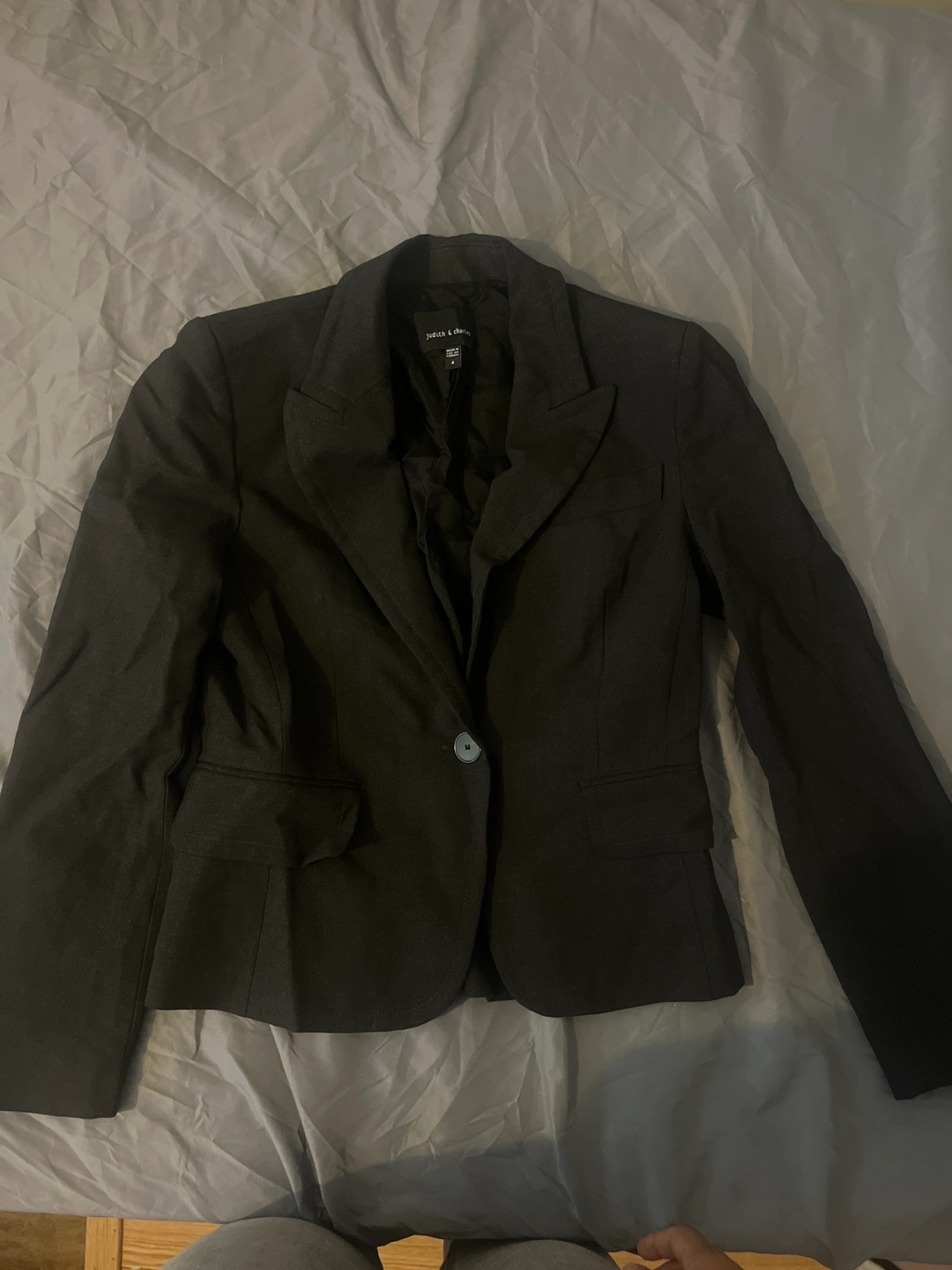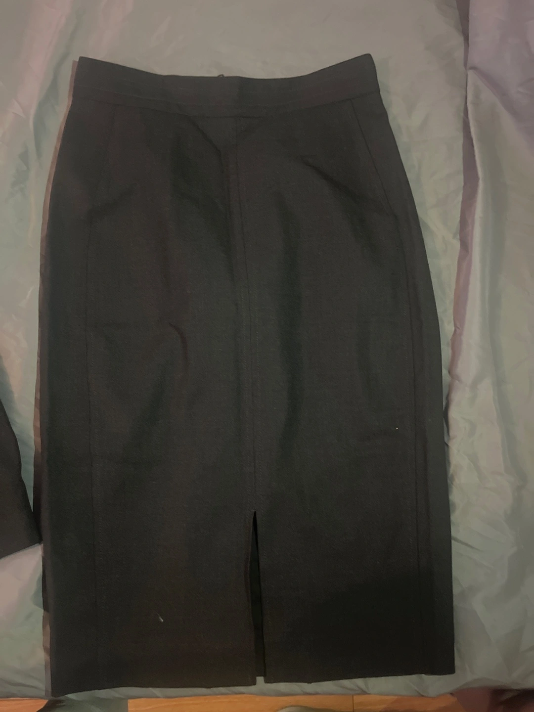 A professional suit set. Includes a blazer and a pencil skirt. A button closure. Perfect for a job interview, so you can look your best.
