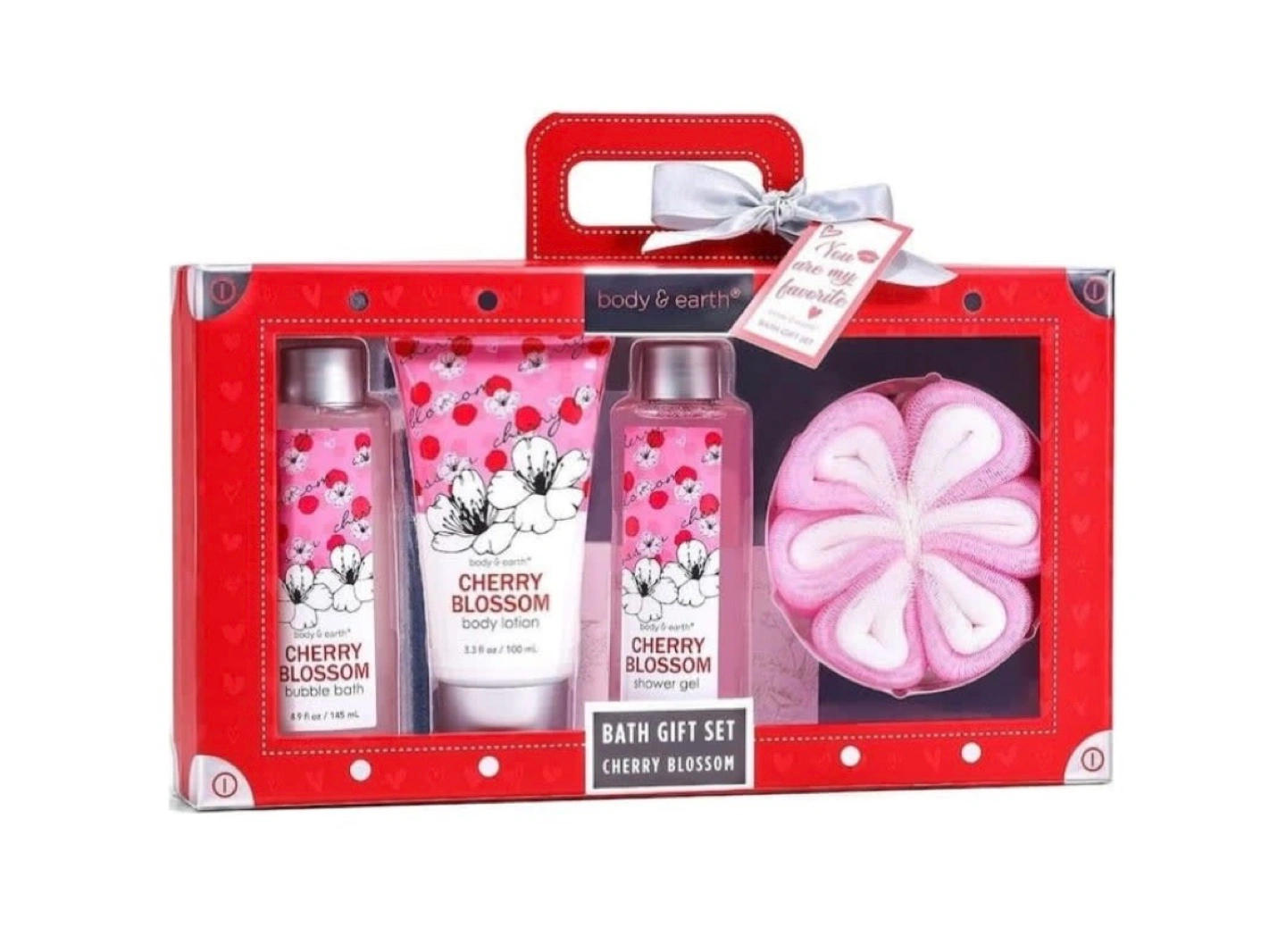 Includes multiple cherry blossom scented items. The perfect gift for someone who deserves some self-care.