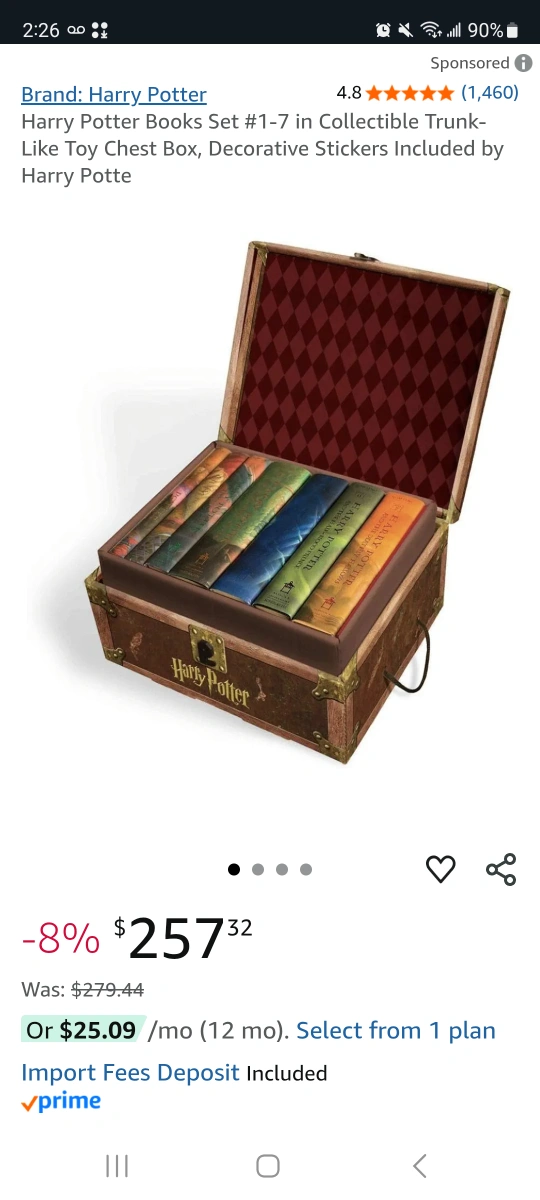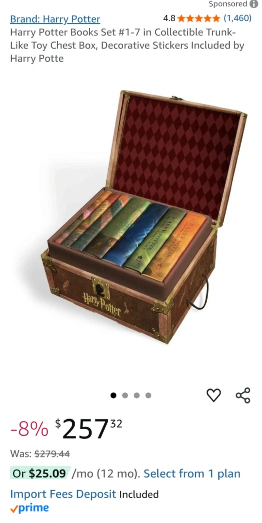 Complete Harry Potter books box set inside of a collectible trunk. This is brand new and the spines have not even been cracked! Original price on Amazon is over $250!