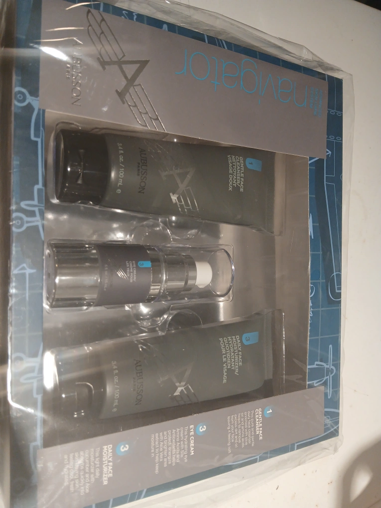 Discover the Aubusson Navigator Advanced Skin Care System, a new and complete regimen for men's skincare needs, containing a gentle face cleanser, eye cream, and daily face moisturizer.
