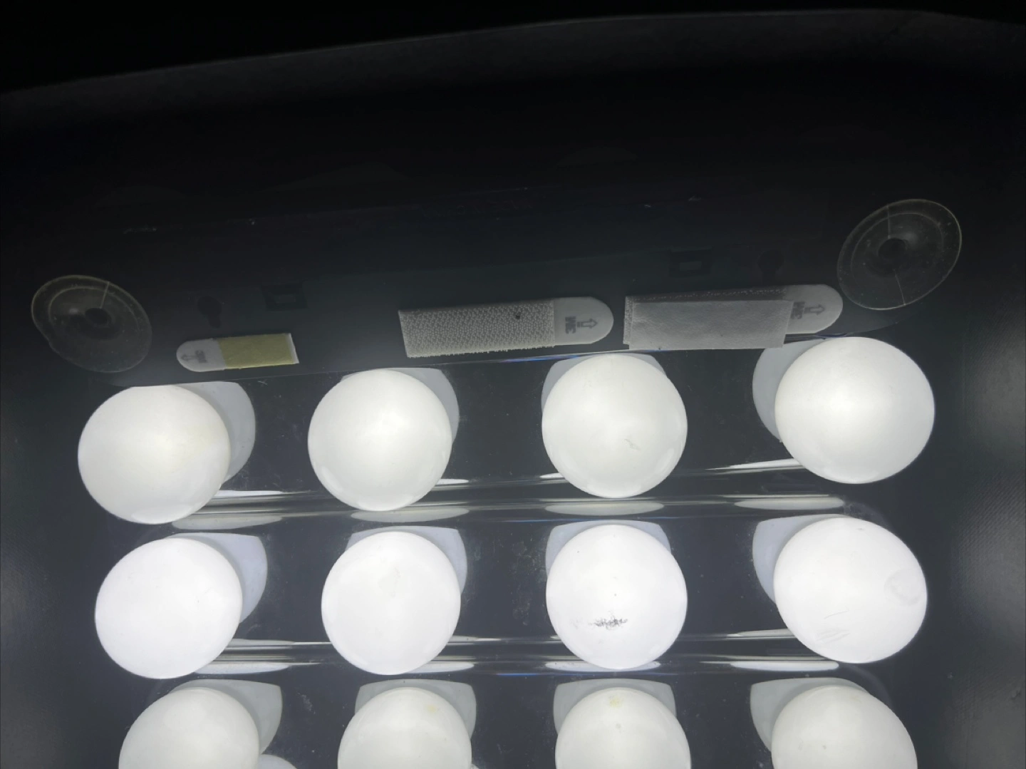 Suction cup attachments and command strips attached.