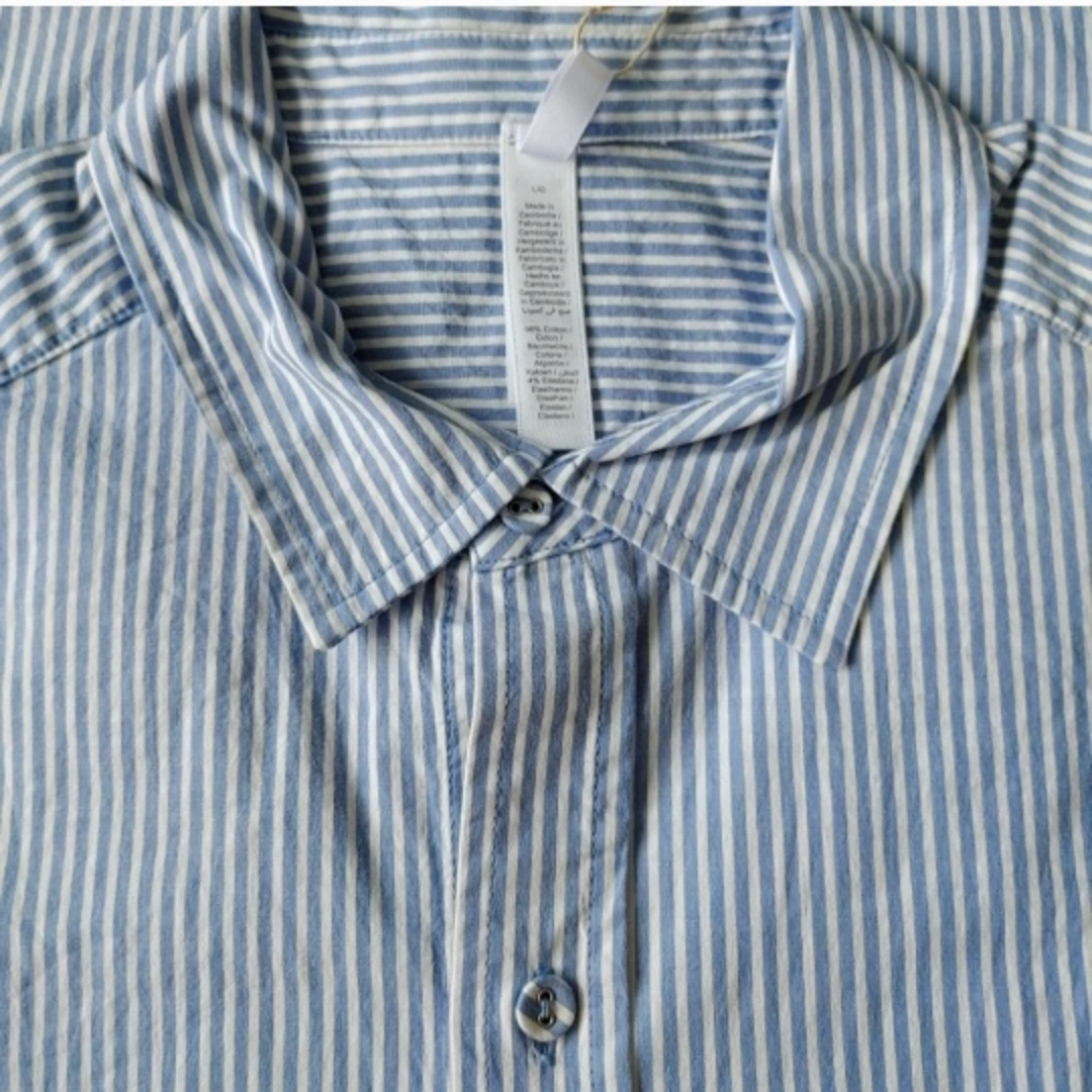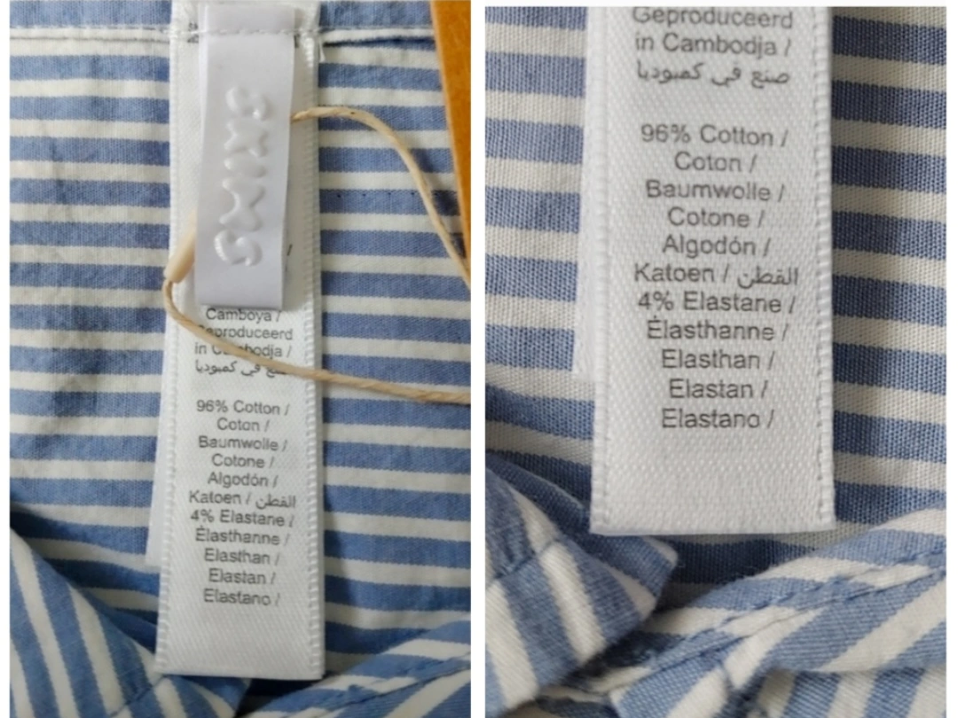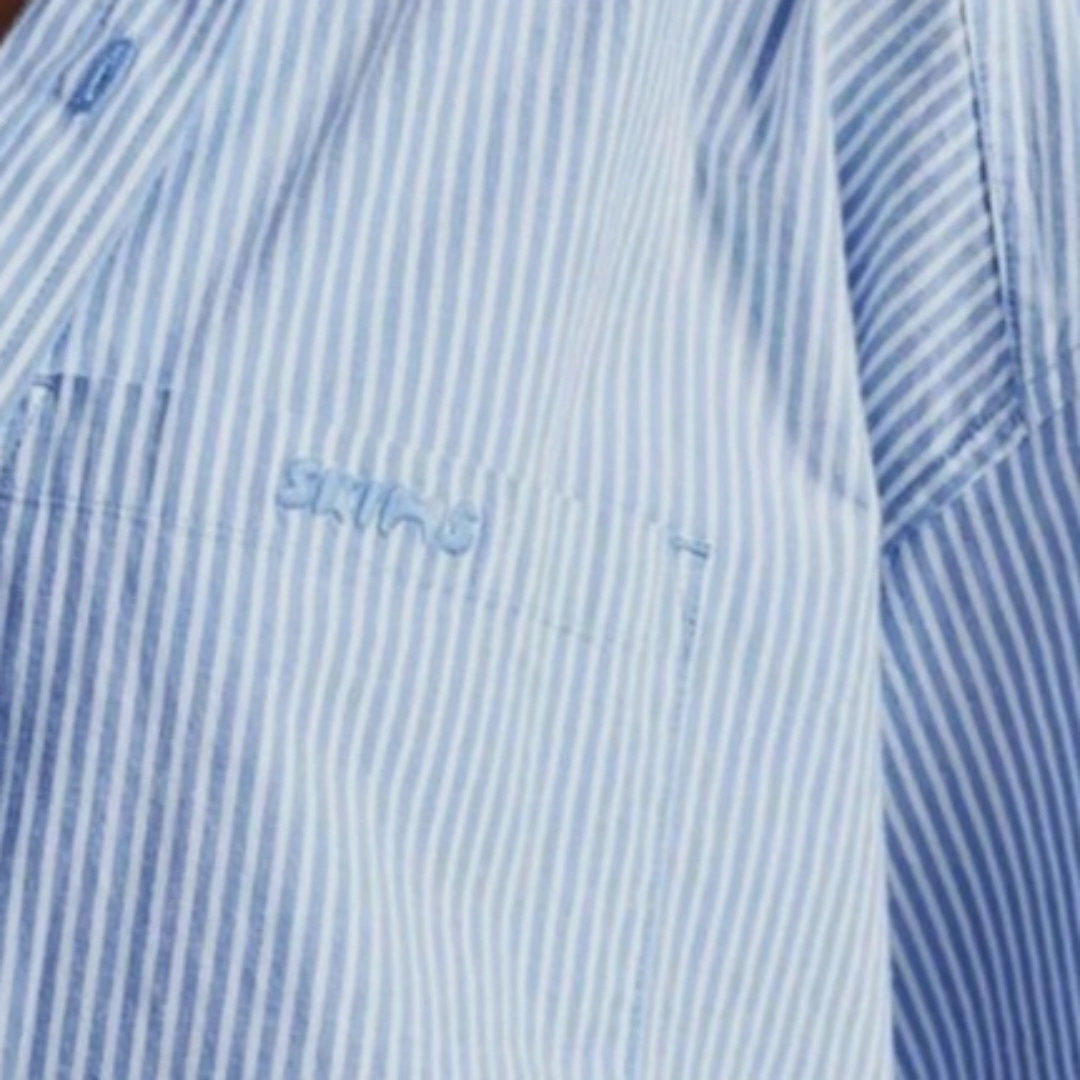 Classic button up shirt. Chest pocket with embroidered logo. Thin elastic waistband with picot trim. Buttons at the front fly. Side pockets. Oversized fit. Fabric: 96% Cotton / 4% Elastane.