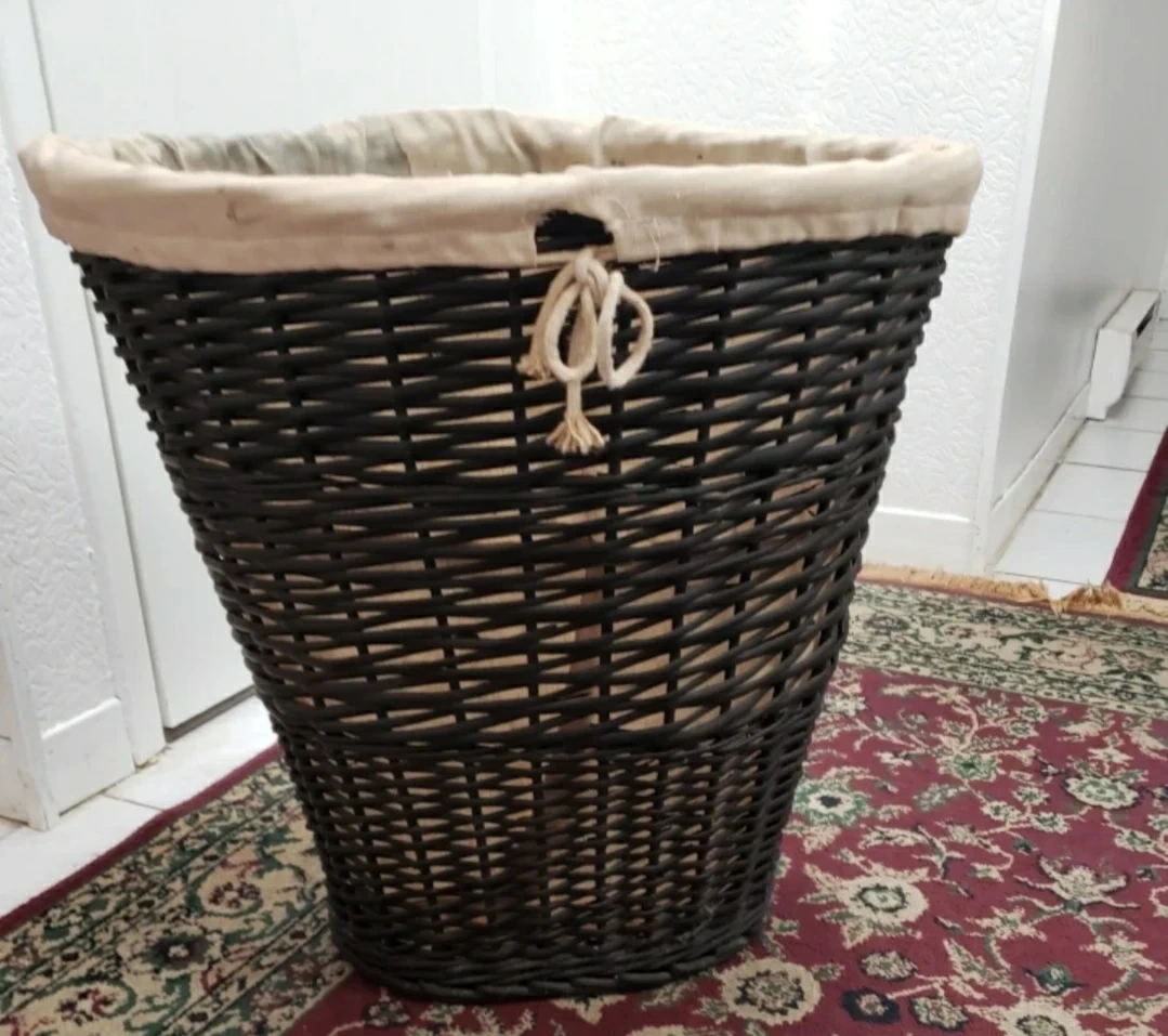 130A lovely, dark woven laundry basket. It has a removable white liner and a woven structure. A decorative tie is featured at the top. Use this basket to add an element of relaxation to your laundry routine.