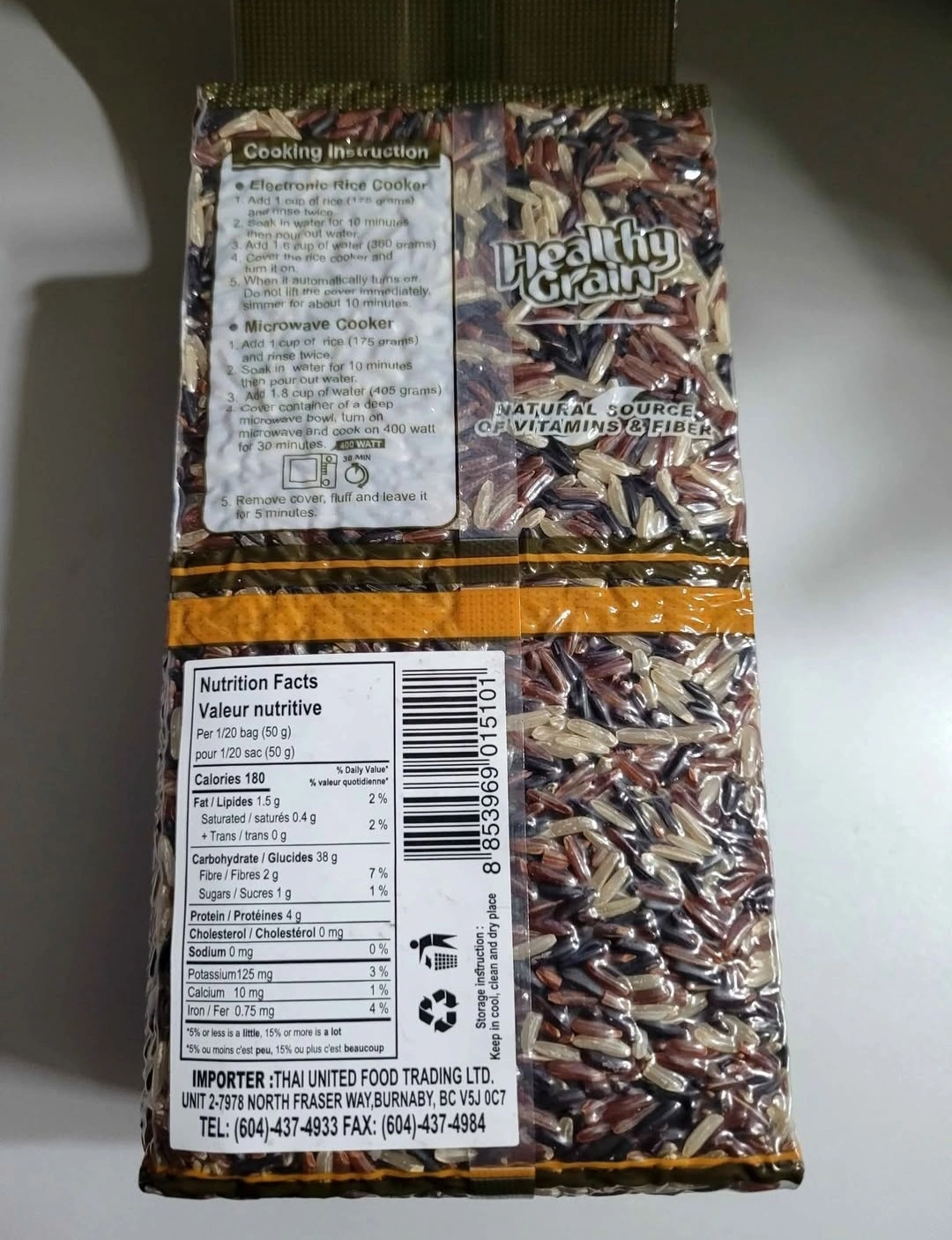 The bag features a vibrant mix of rice grains. It details cooking instructions. Great for anyone looking to prepare a wholesome meal.