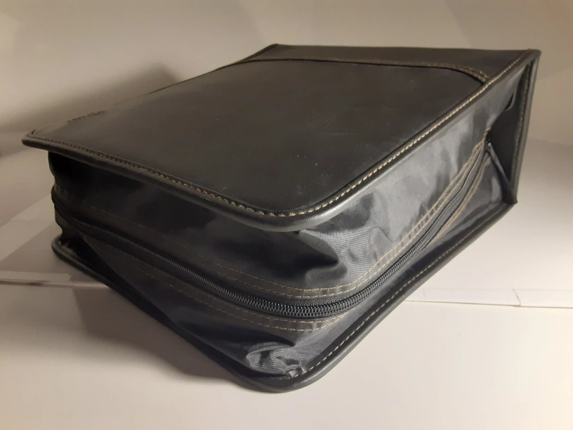 Pretty much brand new other than very minor damage (see images). Store your favourite CD's/DVD's in this black faux leather/vinyl, case logic case and access them with ease. Great for organizing/downsizing collections of media. 320 disc capacity in pages, 16 disc capacity at front of case. All together 336 disc capacity.