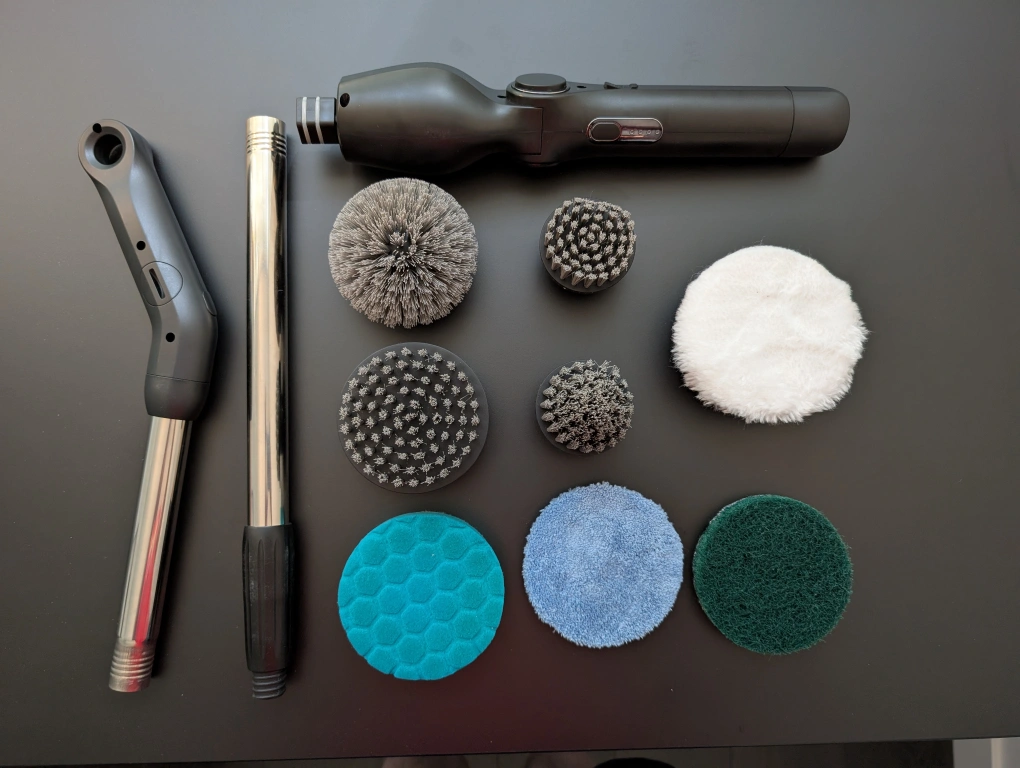 An interesting cleaning kit, including the main body, several brush attachments, and an extension rod. You can use this to make your chores much easier and help relax your mind. Used once or twice.