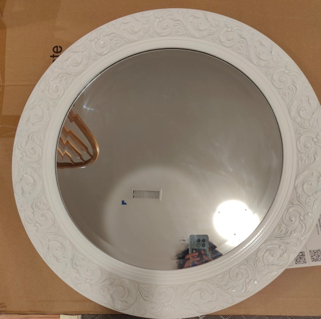 White ornate round mirror ~26" diameter