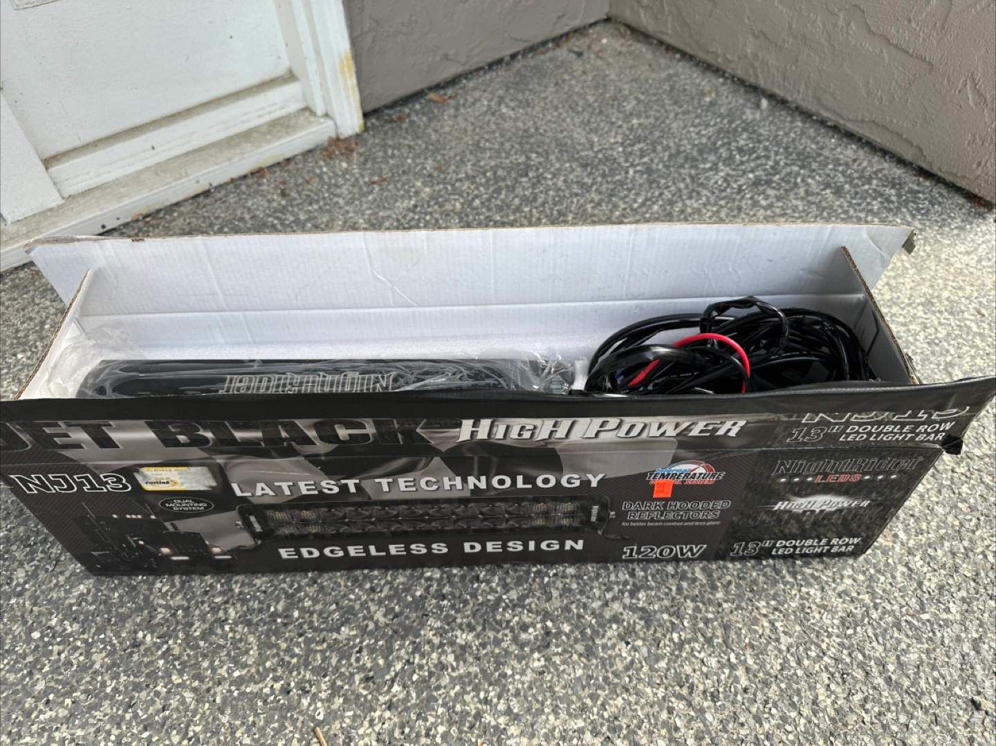 Light bar with all the hardware. Comes with the original box. Perfect for a calming night drive.