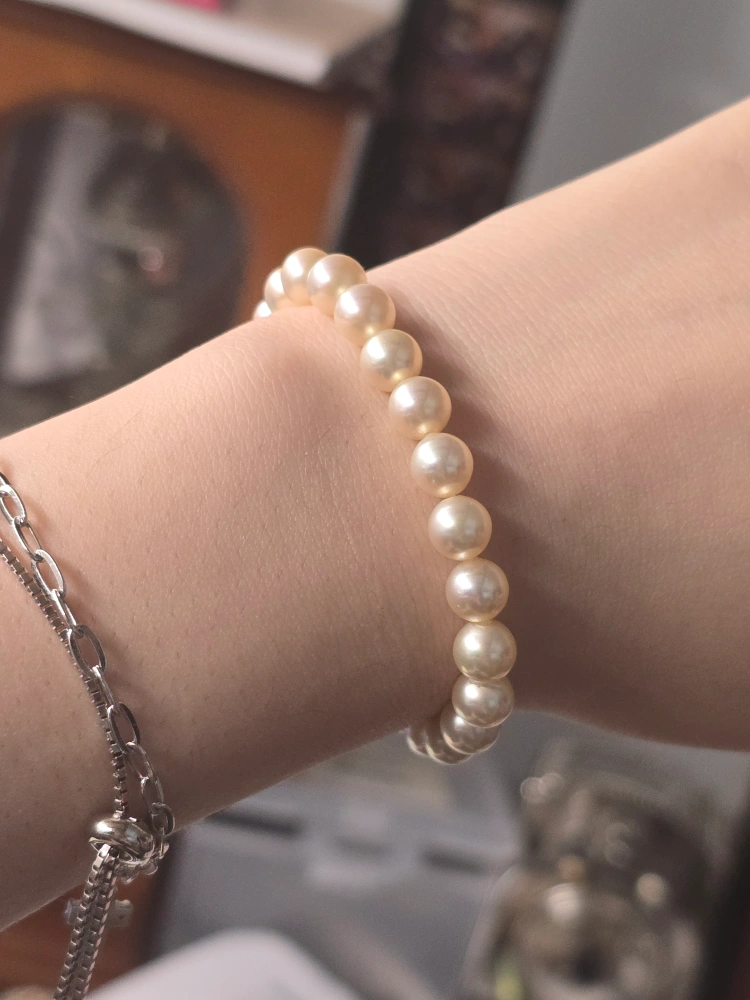 Ivory-toned faux pearl bracelet. Stretchy, but will fit a thinner wrist most comfortably. 5$ or trade!