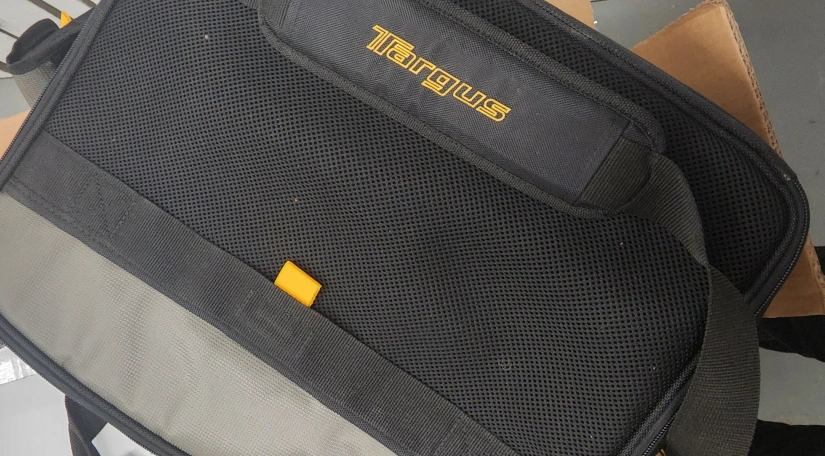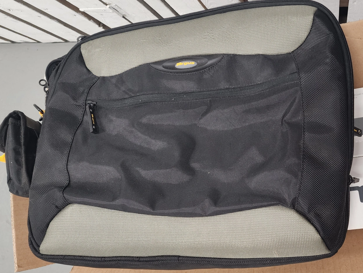64Black and grey laptop bag. Featuring a shoulder strap, carrying handle, and multiple compartments. You can organize your essentials in this bag with ease. bought it from Amazon in $100+. it's New. Kept it in suitcase.