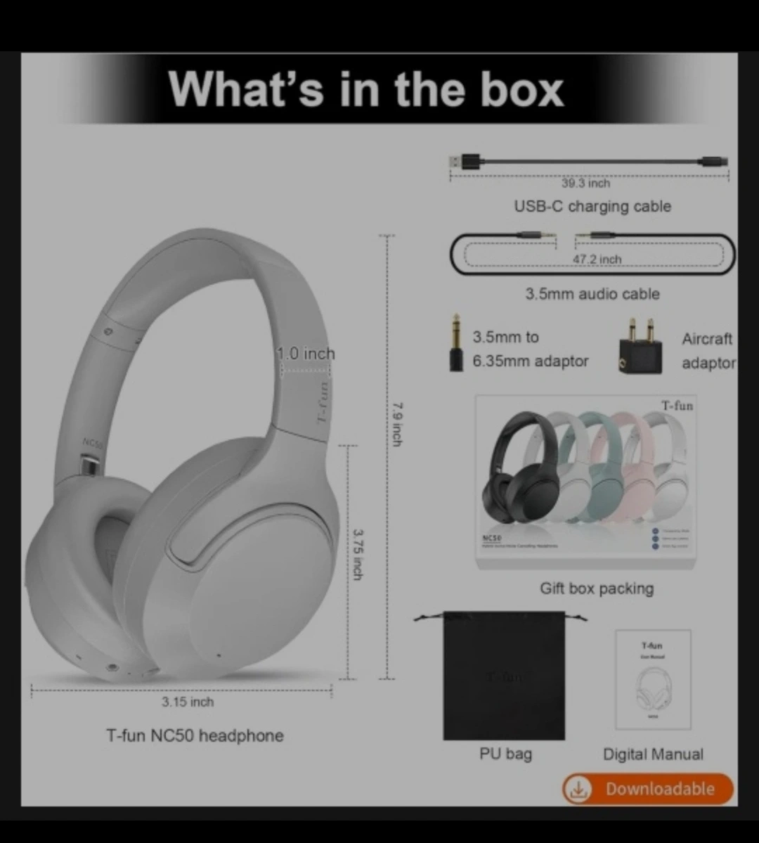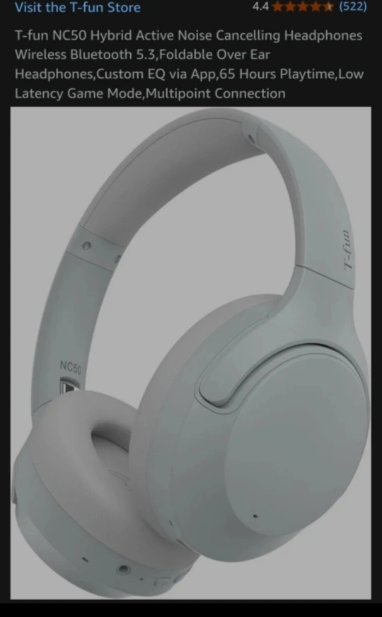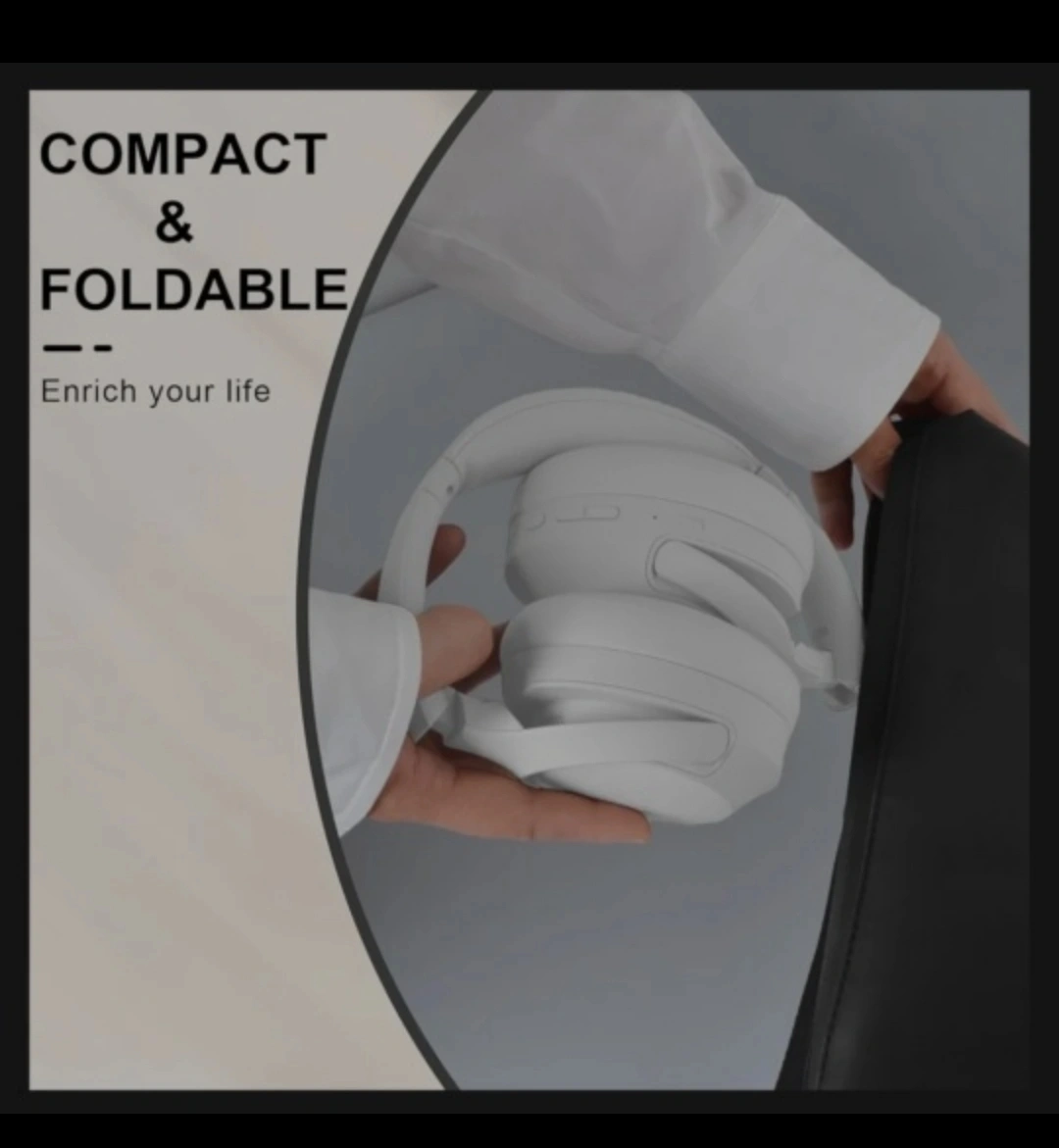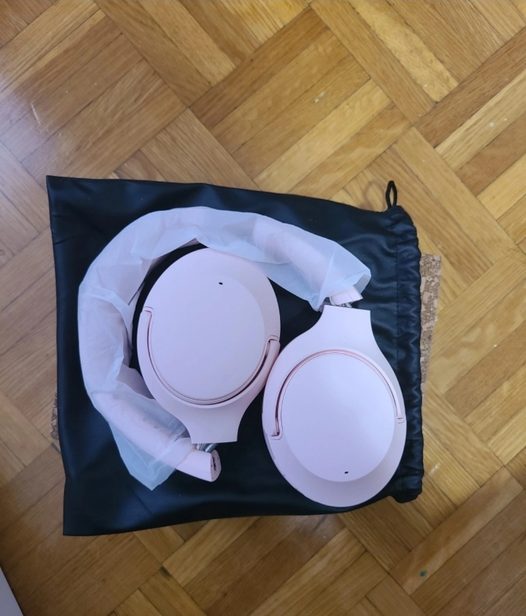Wireless Bluetooth 5.3 headphones. Foldable over-ear design. 65 hours playtime. Low latency game mode. Includes carrying case and charging cable. Pink colour.