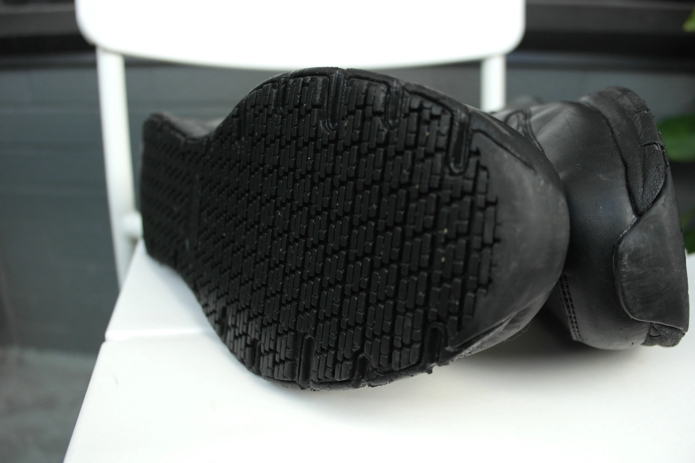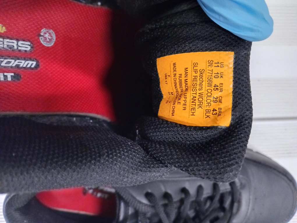 just worn once almost BRAND NEW! Black work shoes. Lace-up closure. Interior in black and red. Rubber soles. These shoes are perfect for work. with slip resistant bottom you can work in any environment with Great grip!