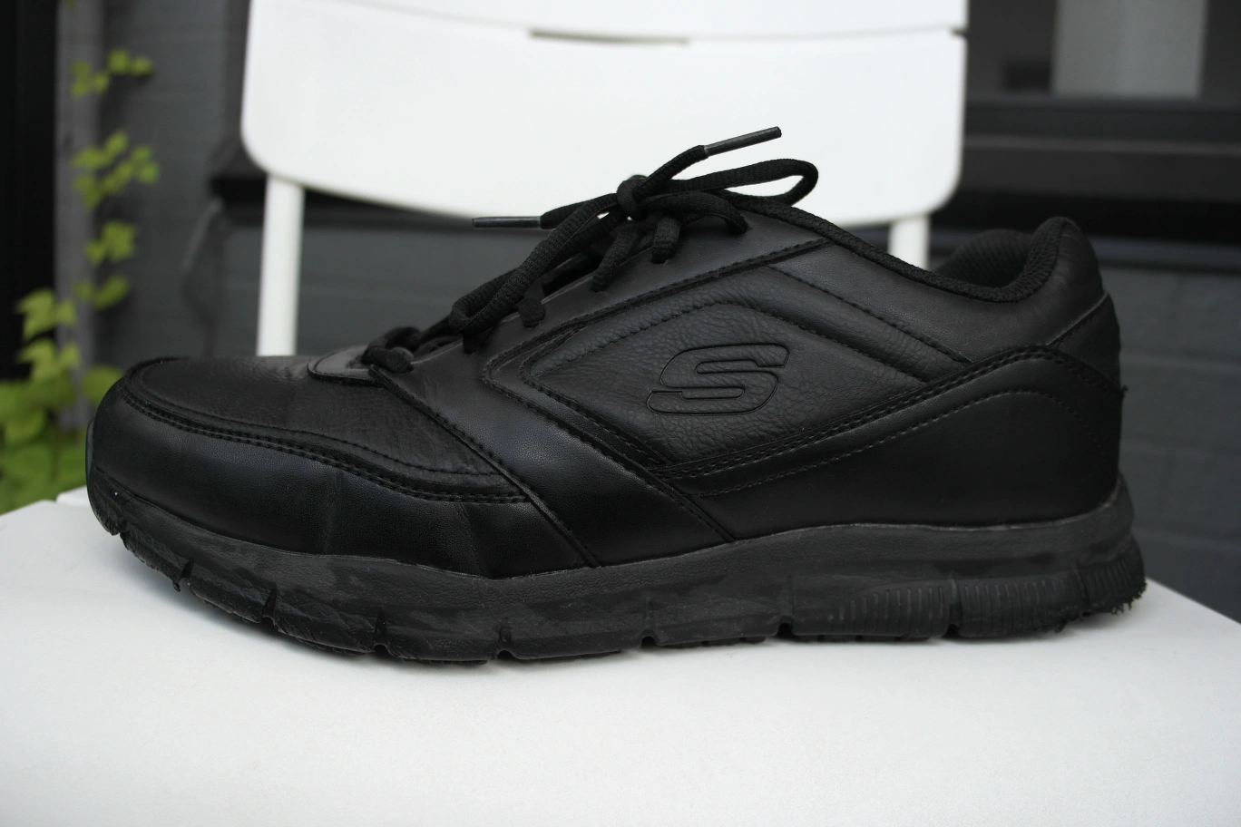 Skechers Black Work Shoe for men, slip-resistant