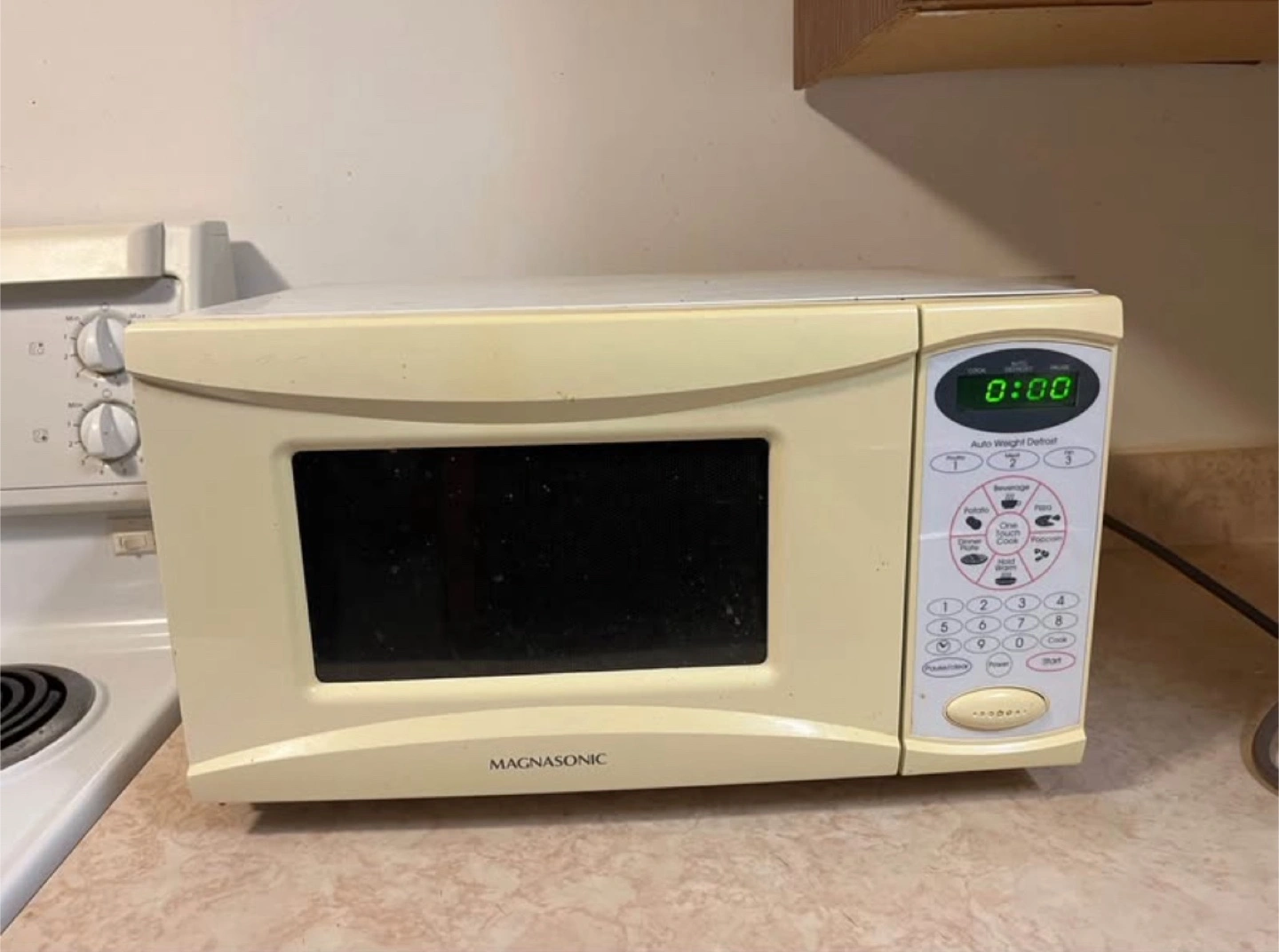 A Magnasonic microwave in great working order. It features a digital display and a variety of pre-set cooking options. It is a great way to warm up your favourite meals at the end of a long day.