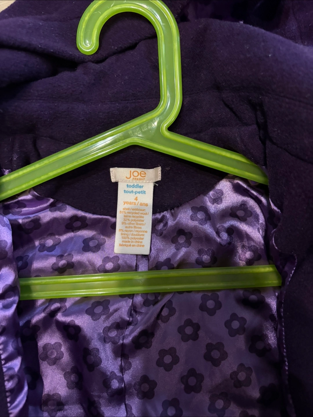 Joe Fresh kids size 4 purple coat - spring or fall