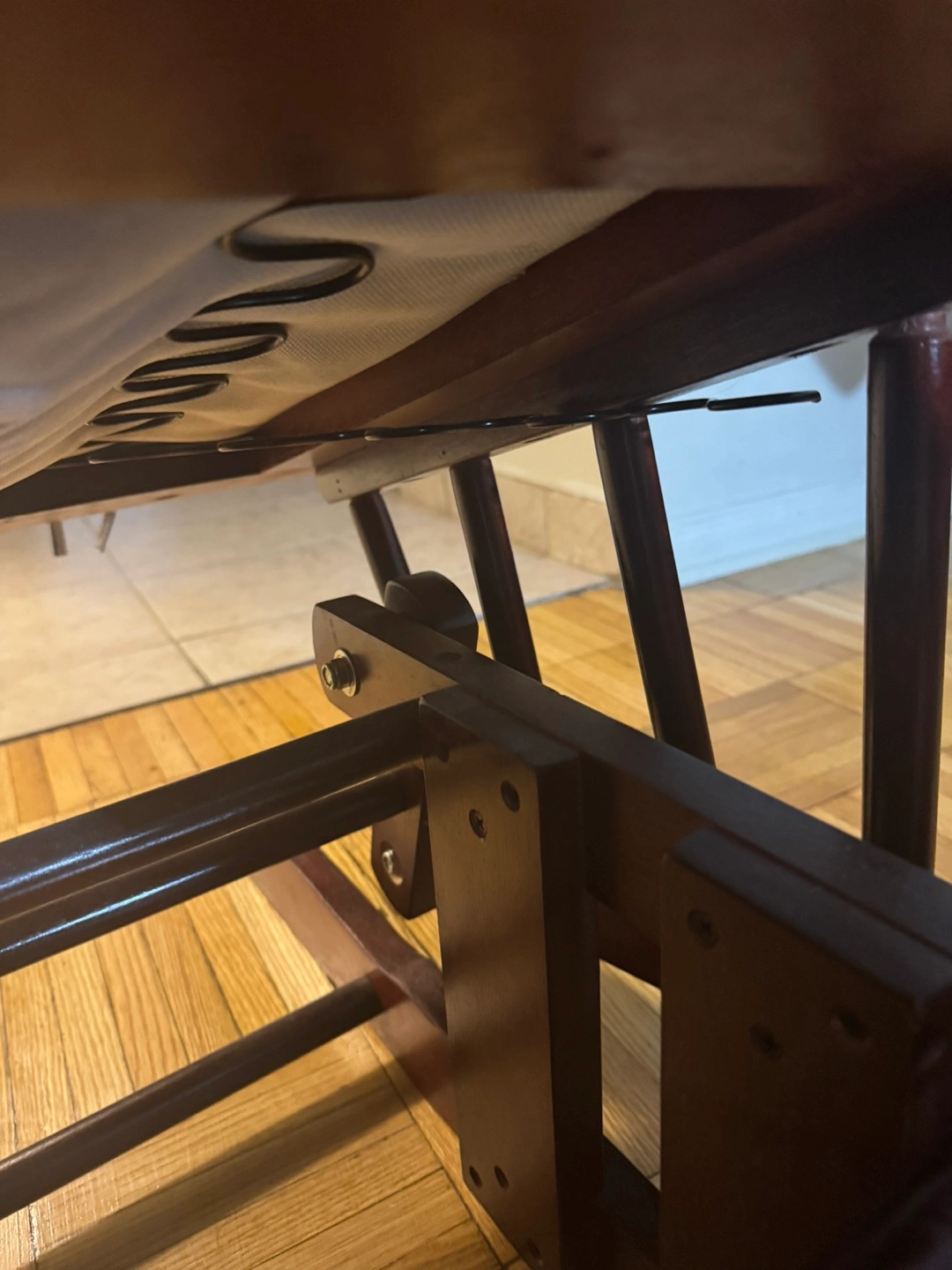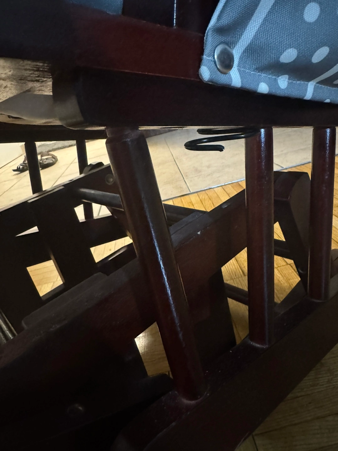 Please note it is well used. One of the seat iron string broken. See in the picture. However it is still working.