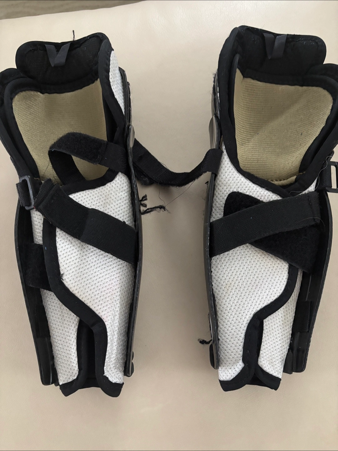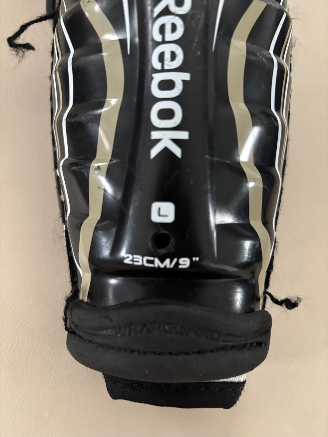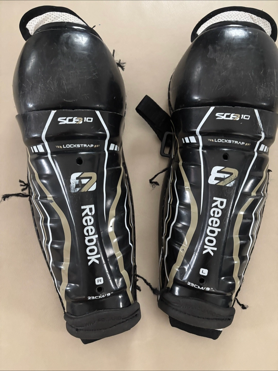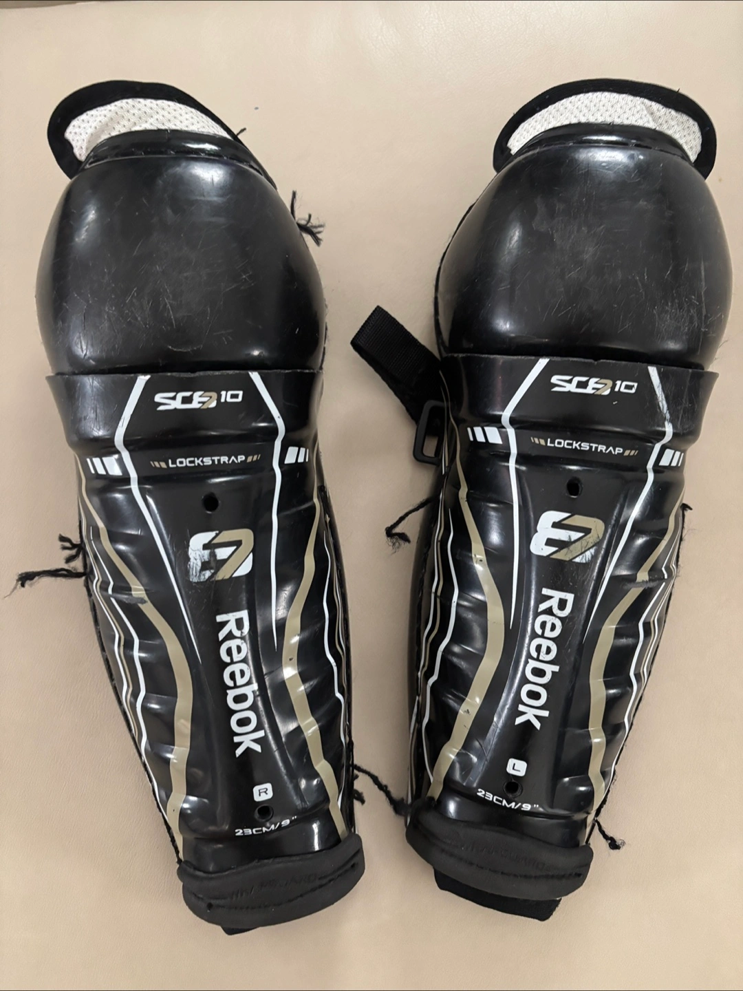 Get ready to hit the ice with these Reebok SC810 hockey shin guards! These 9-inch guards are ideal for providing protection while maintaining flexibility. They've seen some action, so they're ready for more!