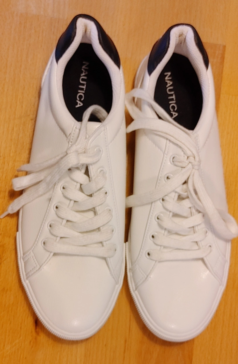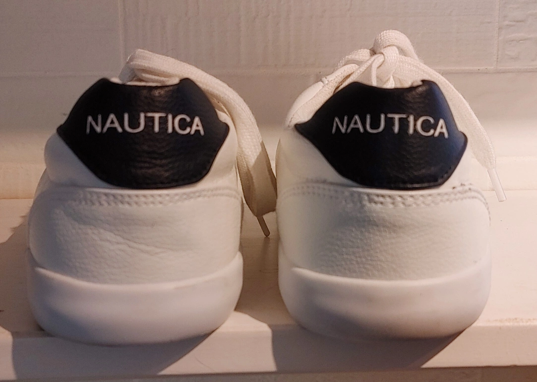 Women's size 10 white leather Nautica sneakers with black accents. White laces. Excellent condition. Smoke free home pick up Mt.Brydges cash only.